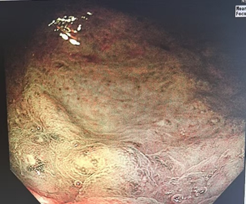 (2024年4月10日本院)治疗后肠镜示:距肛门约37-40cm降结肠局部黏膜未见明显充血,余黏膜光滑,黏膜下血管清晰,未见溃疡。距肛门5cm直肠左侧壁延伸至肛周处黏膜局部稍充血,可见少许糜烂。