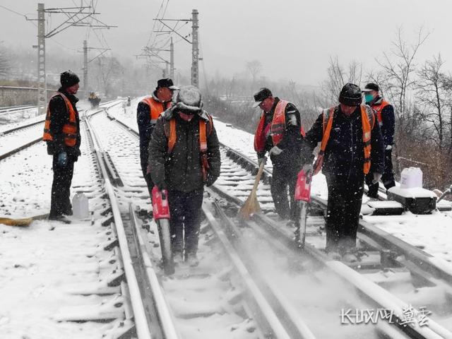 北京高铁工务段做好除雪机具热备,安排专人值守保障应急响应迅速,依托夜间天窗加密关键设备及地段巡视排查。石家庄工务段启动除雪应急预案,全员到岗检查设备工具,安排干部24小时包保本线重点区域,出动600余人次扫雪,将2100余组道岔责任到人。邯郸工务段组织人员应急值守,备齐除雪工具,降雪后及时清扫道岔转辙部位等关键设备,重点处理夹冰积雪,雪落即扫,全力保障铁路运输安全畅通。