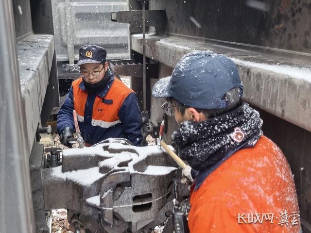 北京车辆段组建除雪突击队清理站区积雪,严防管路冻结故障。同时跟踪重点车站运输秩序,提前研判降雪可能引发的列车停运、折返等情形,细化方案,做到早部署、早落实。石家庄车辆段组织管理人员一线分片督导,清理车辆易受冰雪影响部位的积雪,加强金属冷脆、结冰卡滞等风险排查,不放过细微异常,确保车辆状态良好。