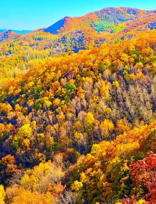 喇叭沟有多美?有诗云:“桦密林白岫云遒,林涛悦耳鸟鸣稠。橡树飘金松柏绿,枫栌赤紫丹霞收。峰峦似锷青天破,涧壑如钩碧泉流。映雪冰崖寒气锁,喇叭沟深艳阳秋。”