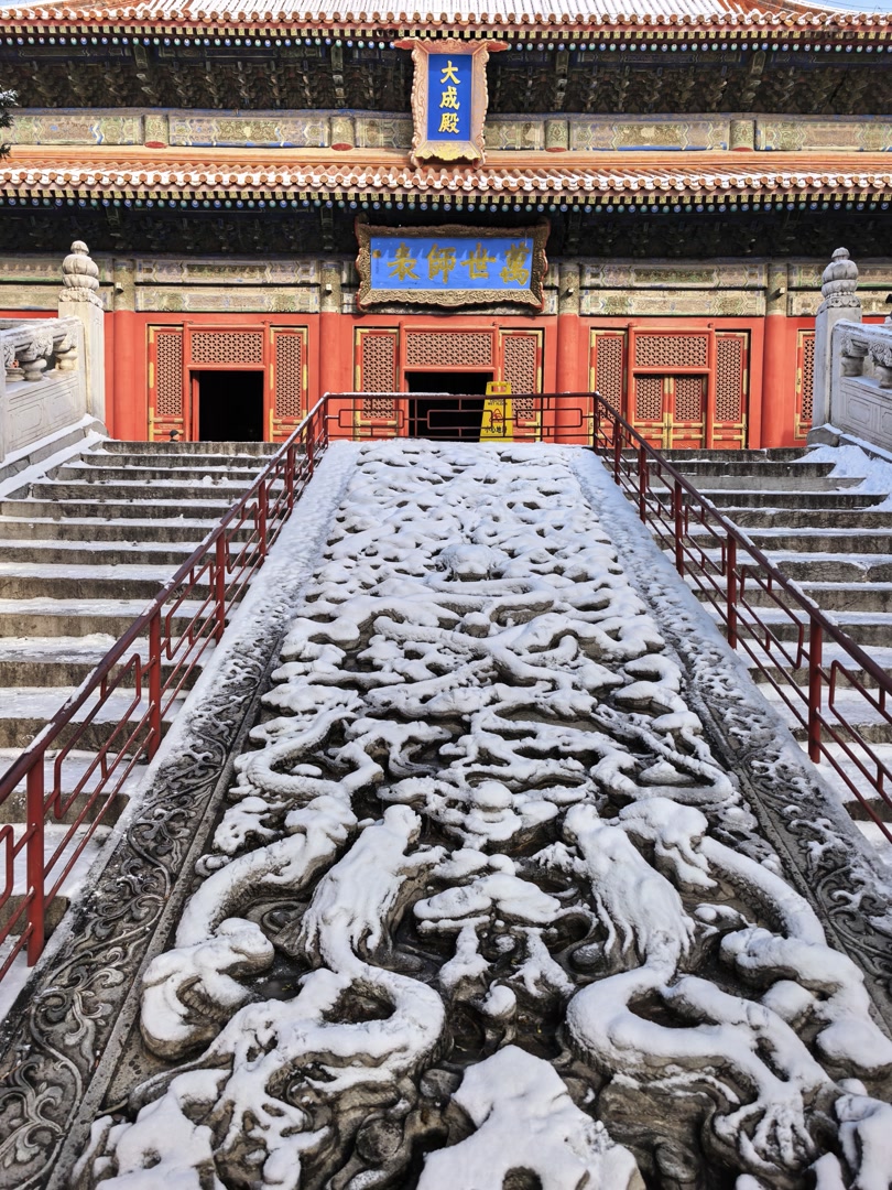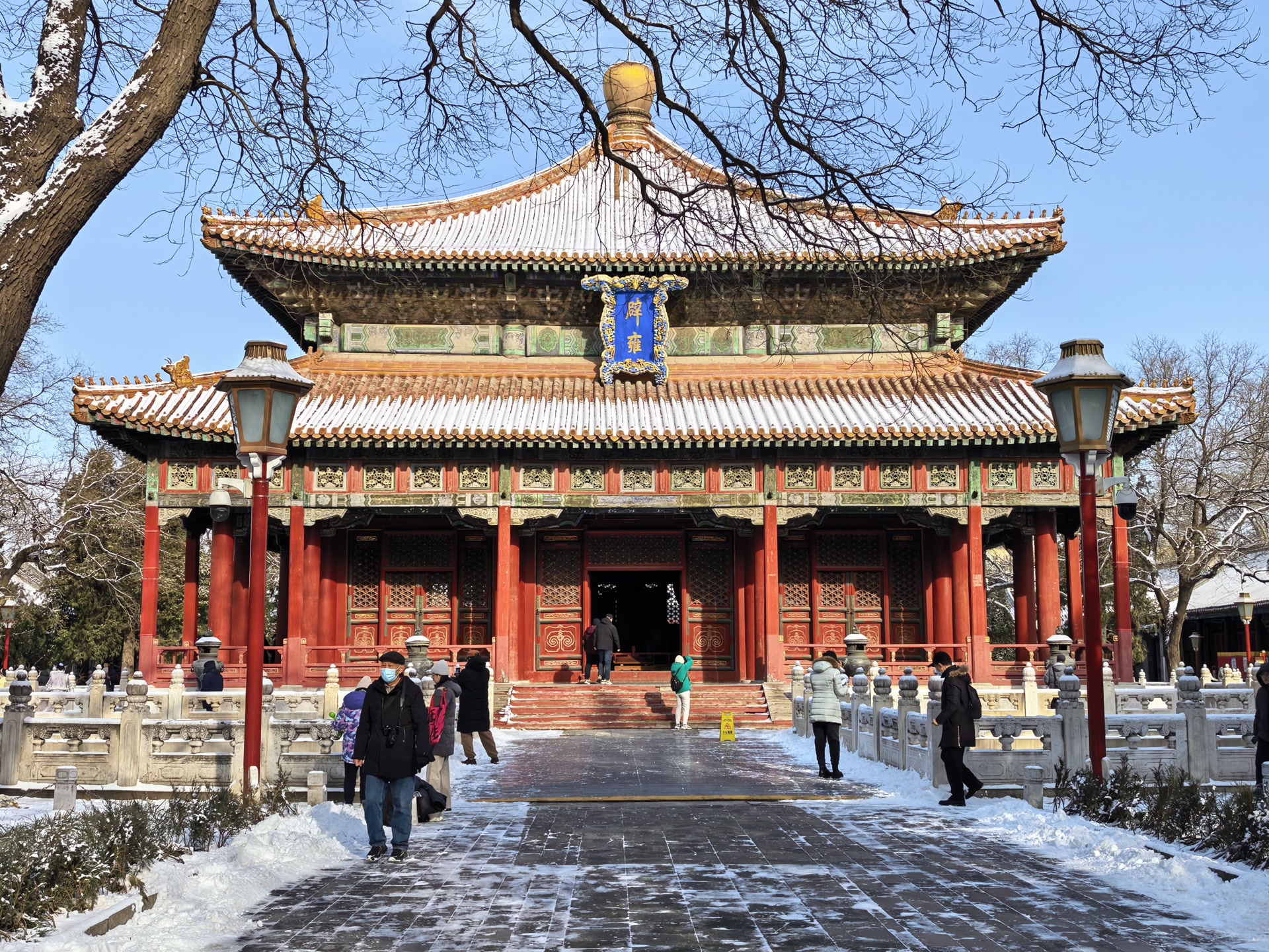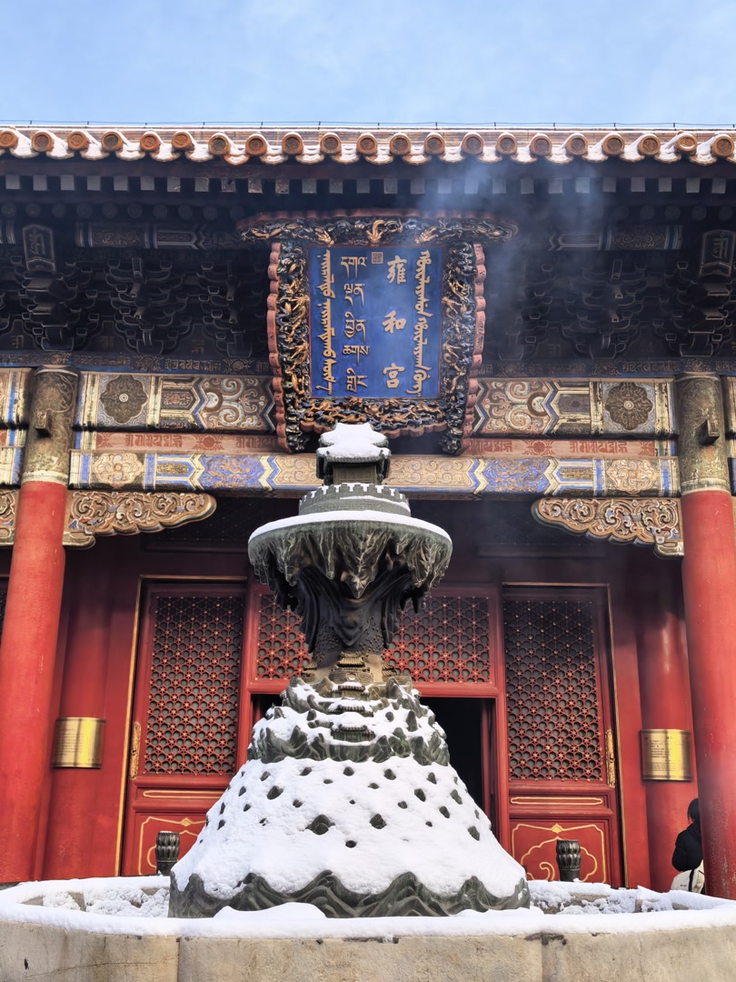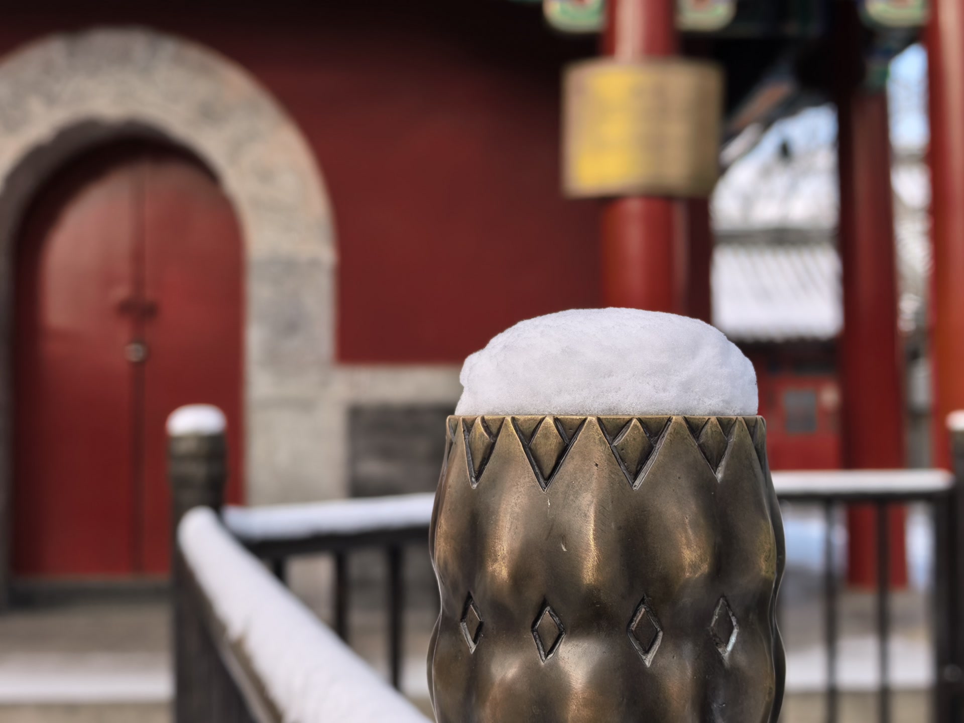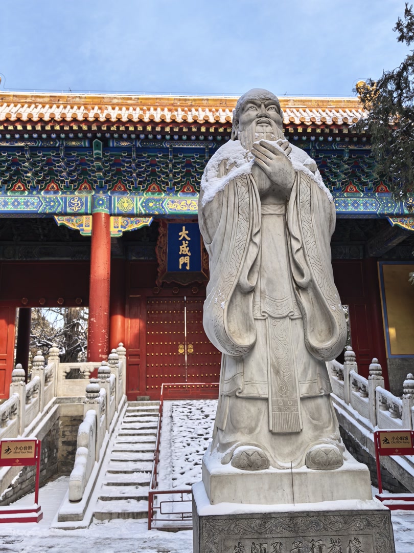 我忆起《礼记·学记》的开篇:“玉不琢,不成器;人不学,不知道。”雍和宫以佛法雕琢心性,追求超越与觉悟;国子监以儒典琢磨才智,致意经世与纲常。这雪,平等地覆盖了佛国的金瓦与学宫的黛瓦,却奇妙地让这两处圣地所共同指向的、关于人类精神塑造与文明星火相传的那份永恒渴求与艰辛实践,愈发澄澈、愈发醒目地浮现于这片洁白之上。