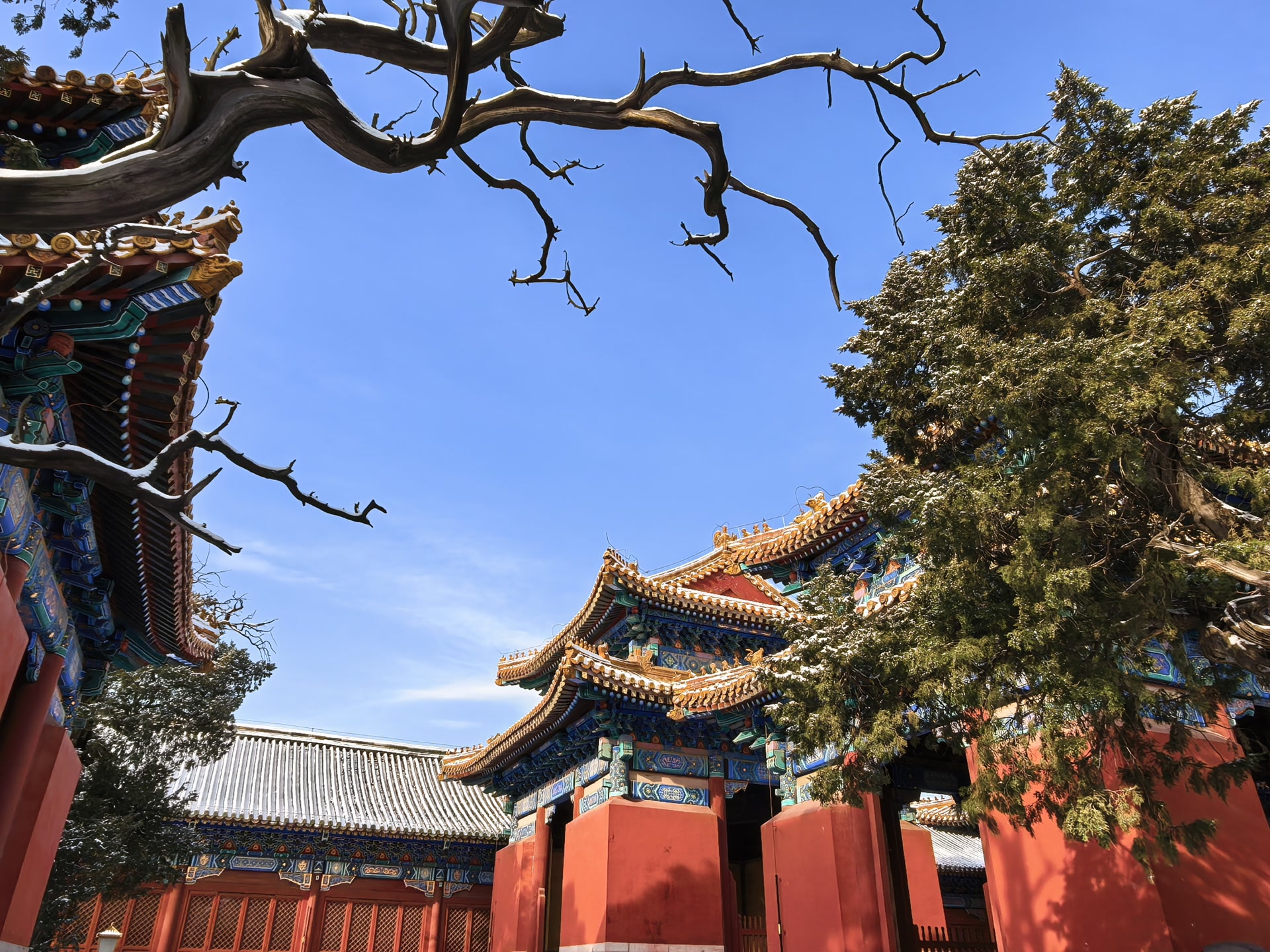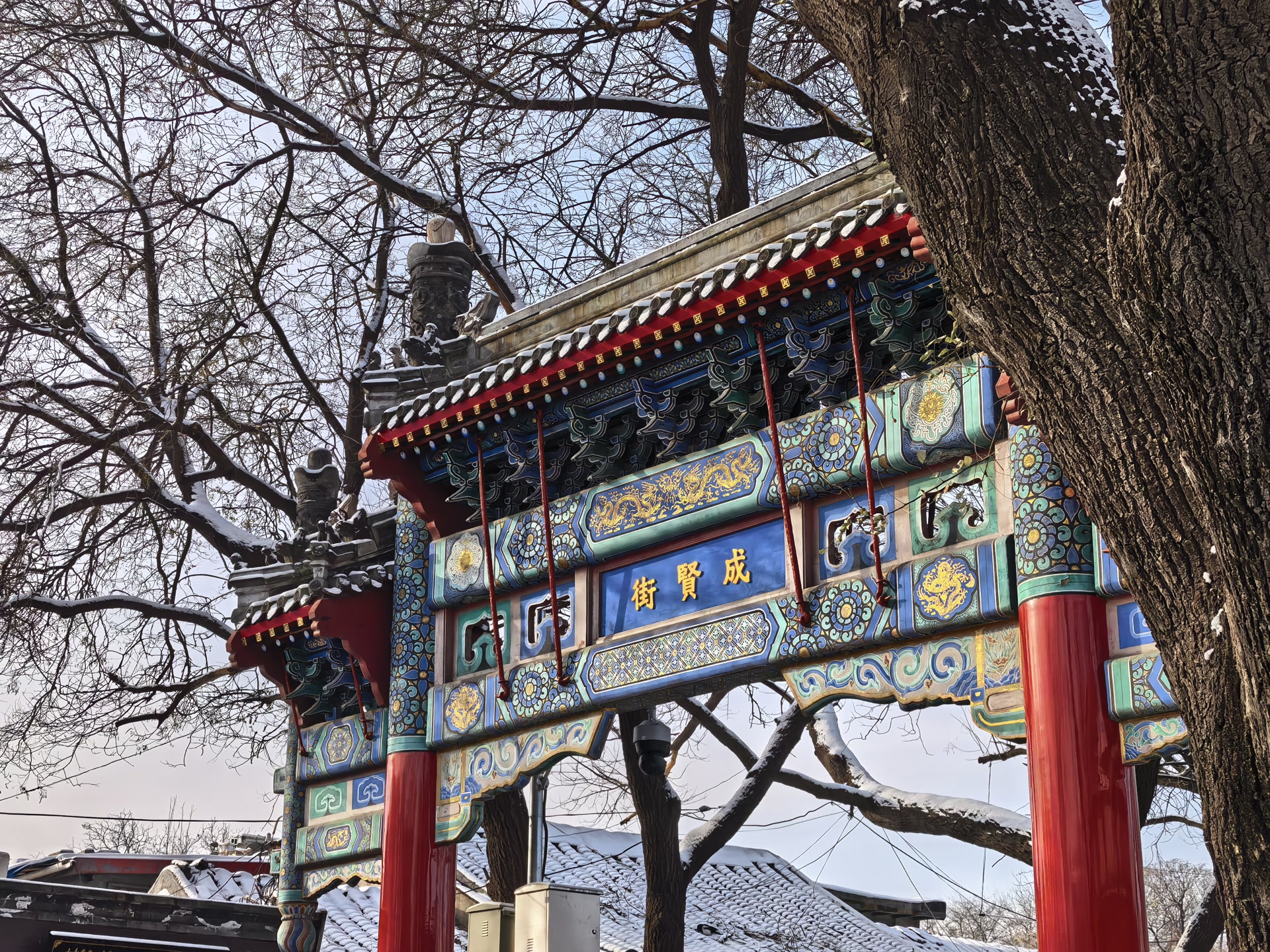 乙巳年十月廿四,公元二〇二五年十二月十三日,晨。北京城于一片混沌的素白中苏醒。据北京市气象局实录,昨夜一场酣畅的中雪,为古城覆上今冬最厚实的银装。我自北新桥三条的胡同口踏雪而出,天地间万籁俱寂,唯余新雪覆压枯枝的微响与足下“咯吱”的清冷韵律,转向京城东北隅一条静谧的古老街巷——成贤街。那里,梵刹与学宫比邻而居,一为黄教重地雍和宫,一为天下文枢国子监。在这场覆盖一切的初雪之下,佛国的幽深与儒林的庄严,即将展开一场超越言辞的静默对话。