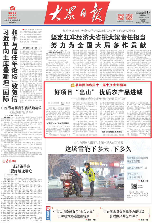 “从‘小雪’到‘大雪’,我们村的‘生意’一直不错。”12月7日,淄川区寨里镇邹家村党总支书记、村委会主任焦政源提到的“小雪”,是第二期展销会开幕的日子。
