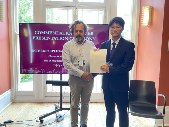 他作为江南大学至善生,有幸参加2024剑桥大学领航计划,并担任该游学班班长一职,于暑期与至善学院指导老师带领同学前往剑桥大学学习两周。最终在参与该项目的所有至善生中脱颖而出,斩获优秀个人,并获得剑桥大学教授推荐信一份。