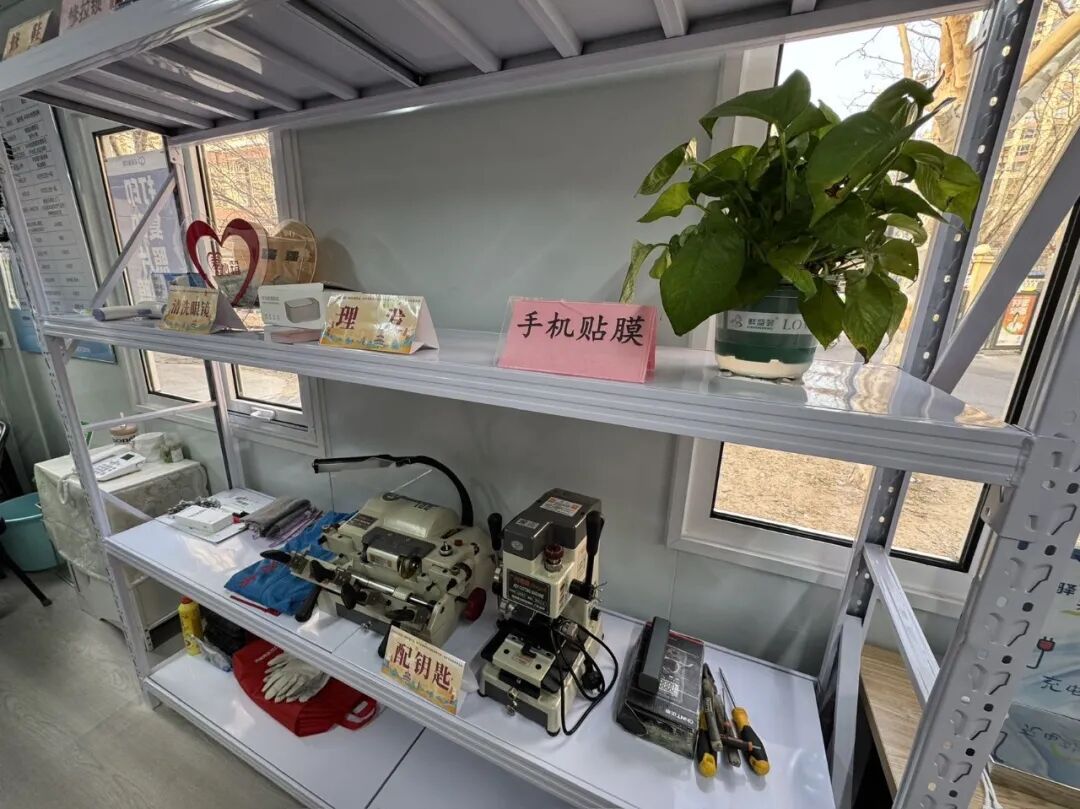 小到裤脚扦边、鞋子修补,大到家电维修、家装维护,“峪见幸福 创享空间”的服务清单涵盖居民生活多个刚需场景:理发美发可实现家门口形象焕新,家政服务能解决家务打理难题,婚姻中介、房源登记可匹配居民社交与居住需求,水电暖维修、复印打印、配钥匙更能及时化解居家应急困扰。