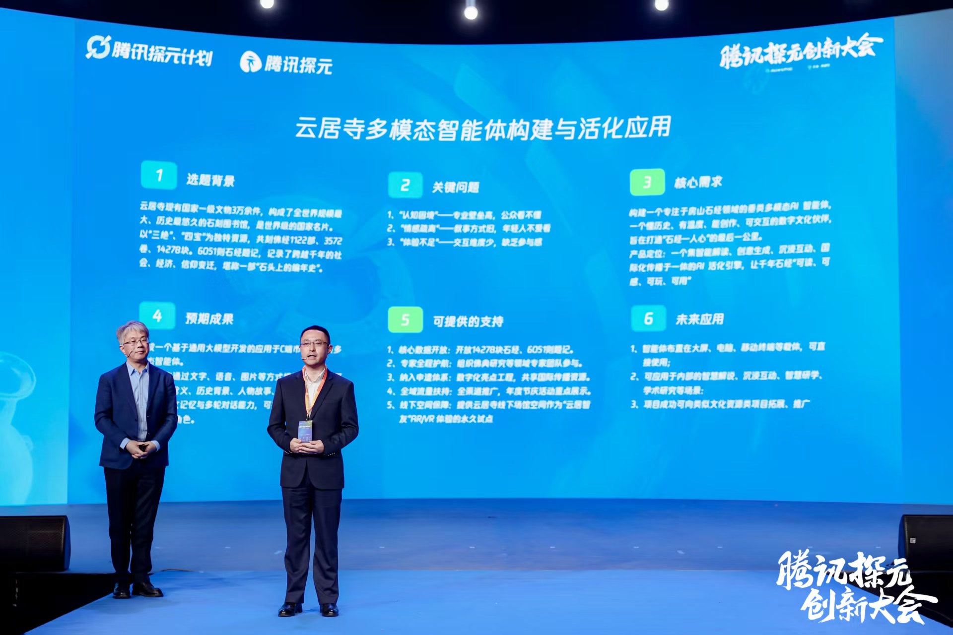 大会现场,云居寺文物管理处发布腾讯探元合作项目“云居智友”。房山石经作为世界级文化瑰宝,镌刻着千年智慧,却因专业壁垒高、叙事方式旧、交互体验少,难以真正走近大众。为此云居寺将共享相关文物数据及史料,同步提供线下场馆与专家团队支持,联动申遗体系共享国际传播资源,诚邀各界携手打造“云居智友”多模态智能体,应用于智慧解说、沉浸互动、学术研究、智慧研学等场景,让石经“可读、可感、可用”,打通文化传承与人心的“最后一公里”。