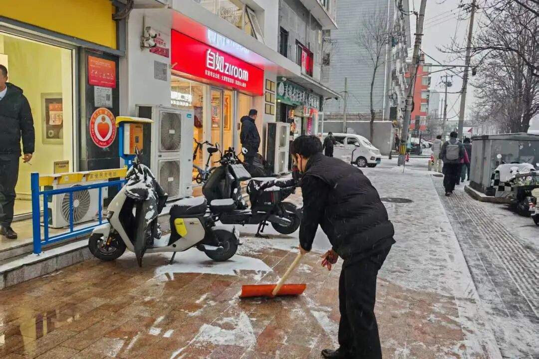 “路上的积雪清理了,心就踏实了。”一位正在扫雪的社区工作者笑着说道。沿街商户也纷纷响应“门前三包”号召,主动清扫门前积雪,物业工作人员更是提前部署,在坡道、台阶等易滑区域铺设防滑垫,设置警示标志,全力保障道路畅通和居民出行安全。