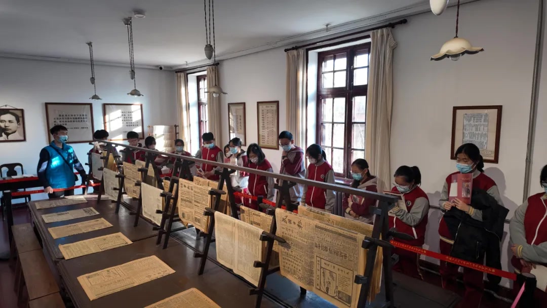 参观过程中,讲解老师提出思考问题:“如果你是百年前的青年,会做出怎样的选择?”“《新青年》的‘新’,对我们今天的成长有何启示?”同学们三五成群,不时低声交流着各自的感悟,思想的火花于历史的现场悄然迸发。