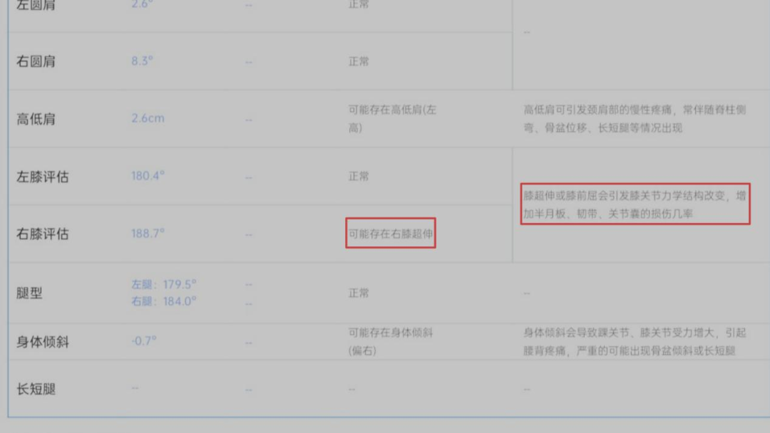 AI检测仪器1分钟检测出主持人膝关节健康危机,根据AI运动分析仪的检测结果,主持人存在明显的“膝超伸”现象,也就是站立或行走时,膝关节过度向后伸直,超出了正常的生理曲度。专家周主任特别指出,这种容易被忽视的姿态问题,在实际成年人群中发生率高达10%。