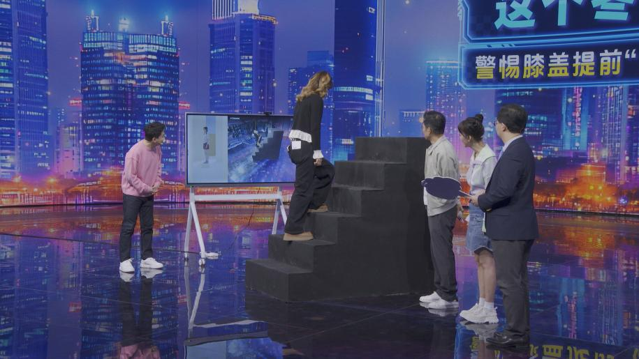 本期《我是大医生》现场科技力十足,AI动态捕捉仪再次对主持团成员进行拍摄捕捉,观察他们的上楼梯姿势是否存在伤膝风险!