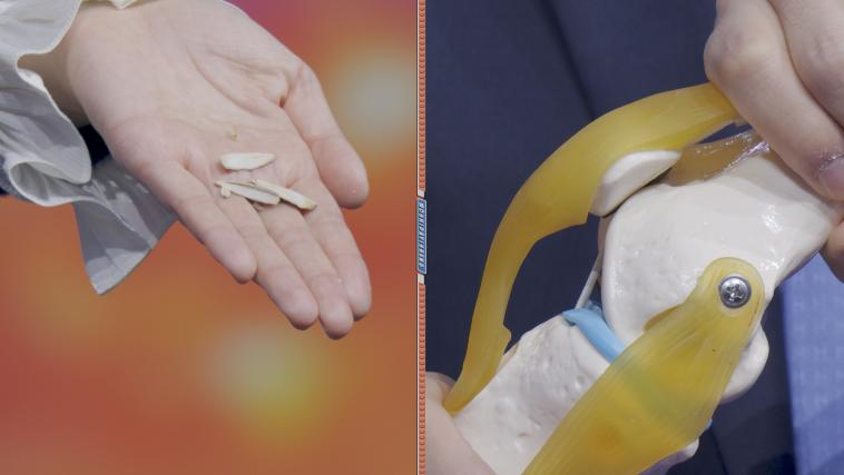 周主任现场讲解,一旦上楼梯姿势不对,出现膝盖超脚尖的情况,久而久之,就会对我们的髌骨关节造成磨损。专家现场实证,将一粒瓜子,放在髌骨关节中,当膝关节模拟超过脚尖,过度屈曲的角度时,瓜子被瞬间夹碎!可想而知如果我们在上楼梯过程中,如果经常出现膝盖超脚尖的动作,会对髌骨关节造成多大的挤压和磨损...