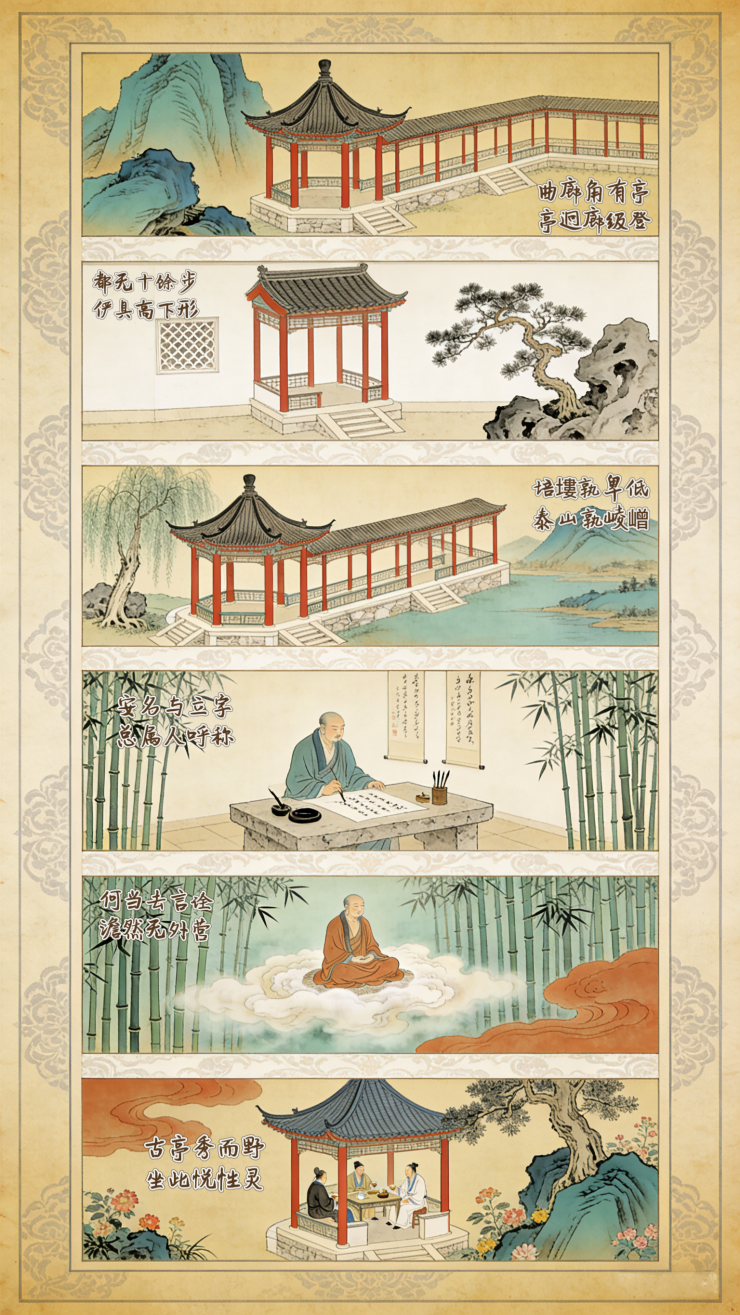 曲廊角有亭,亭迥廊级登。