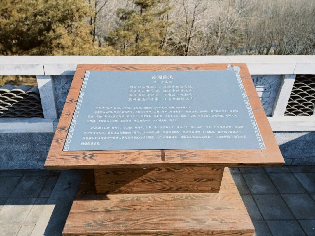 拐个弯就到了观囿台,“南囿秋风”碑前咱们必须驻足!明代李东阳笔下的狩猎盛景太震撼: