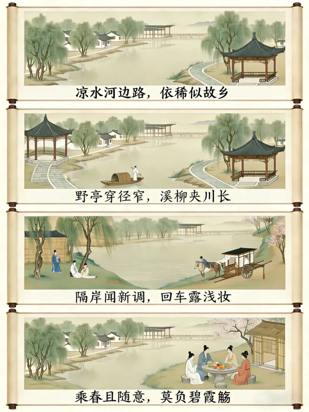 作为南海子的“母亲河”,现在的凉水河依旧“溪柳夹川”,散步时还能听到大爷大妈的京剧唱腔,这不就是诗里 “隔岸闻新调”的现代版嘛~