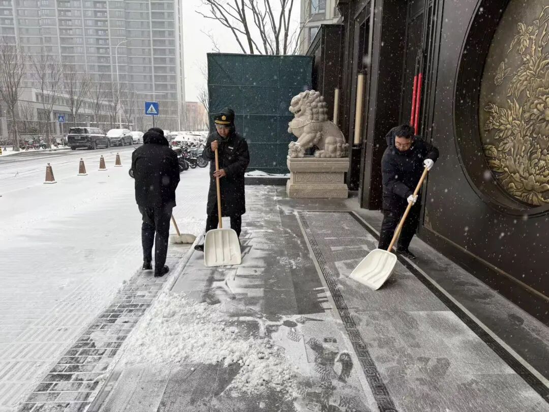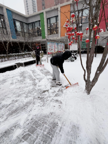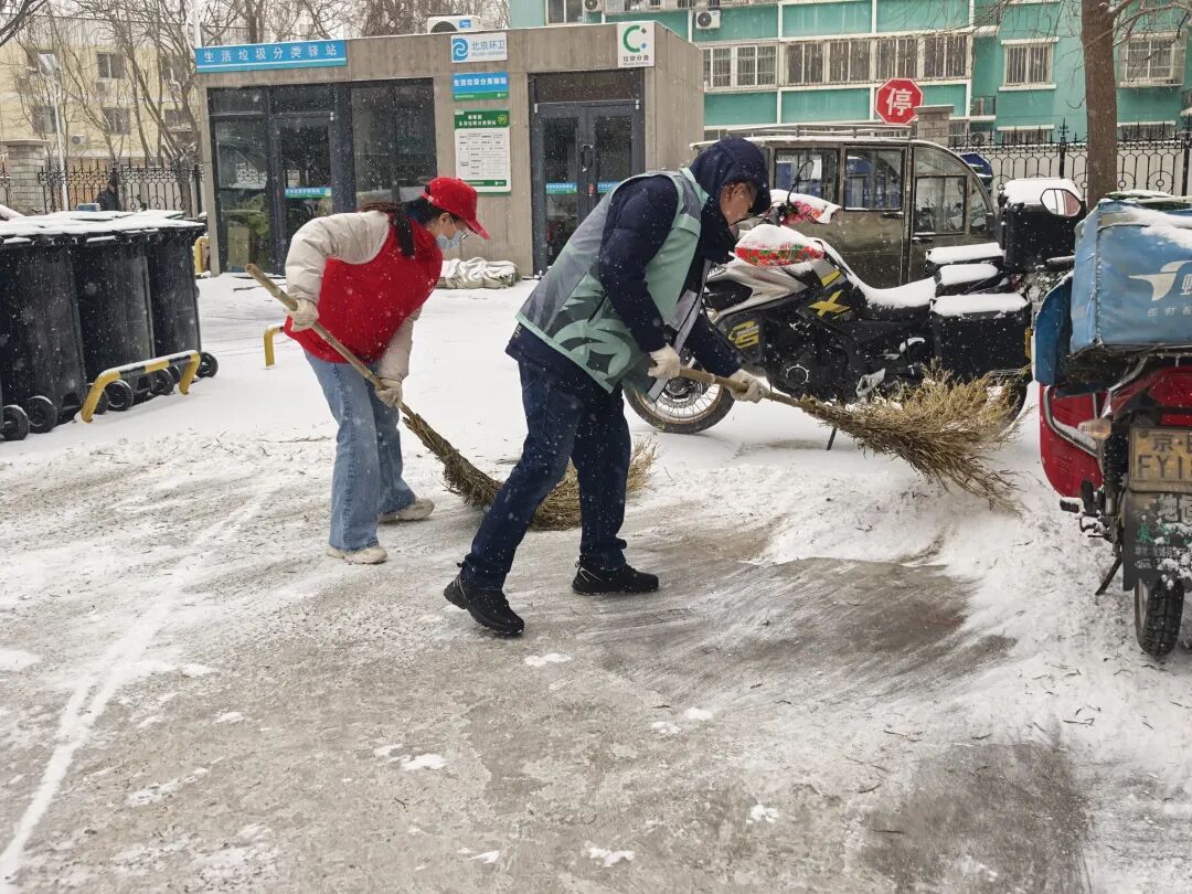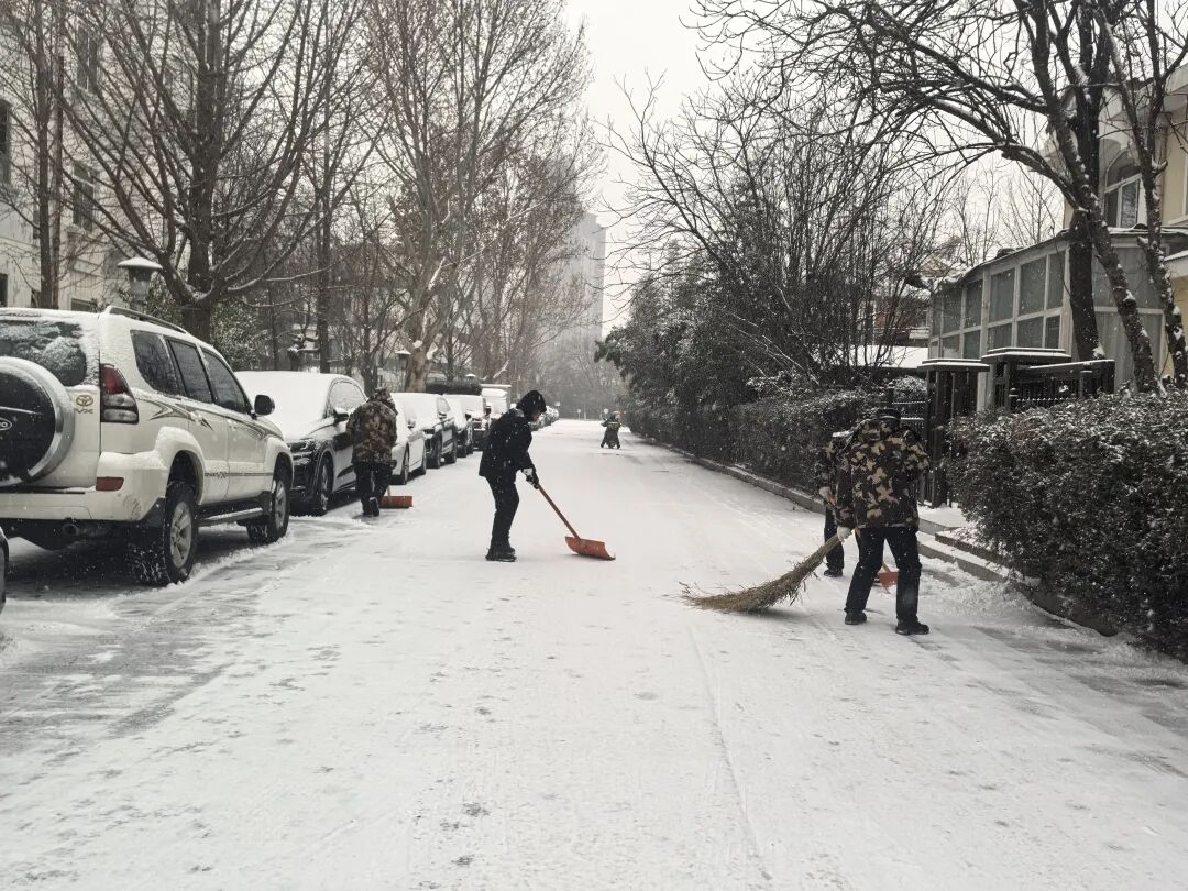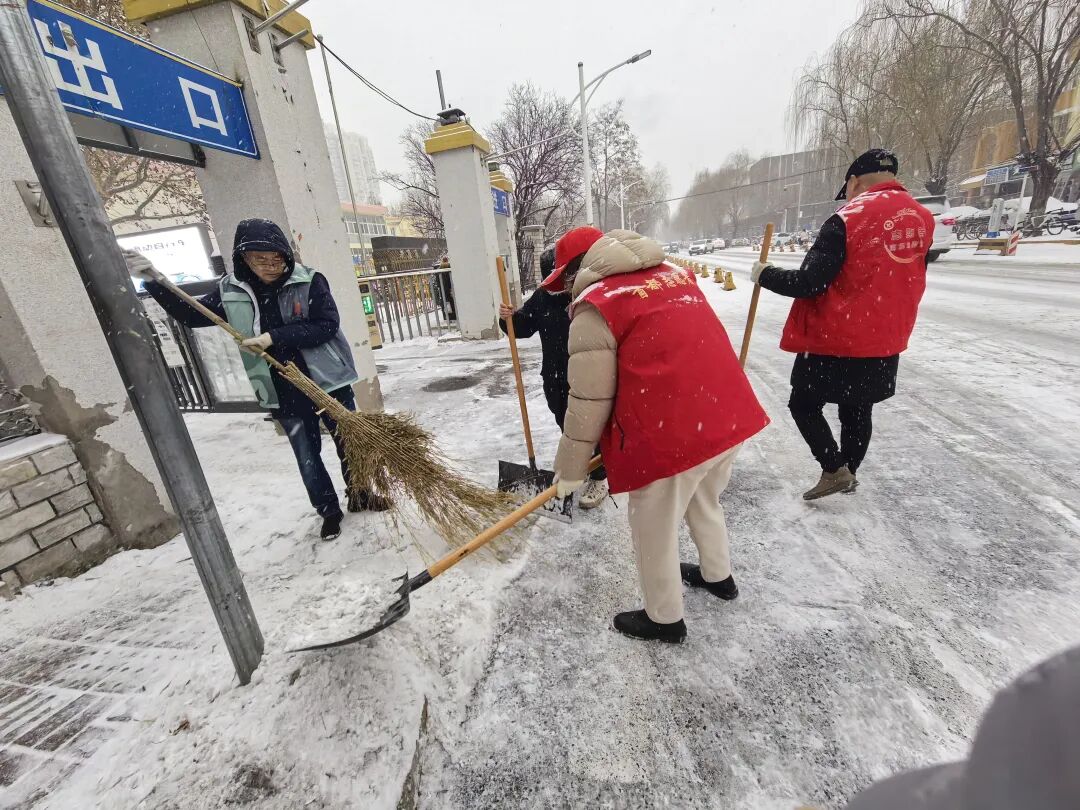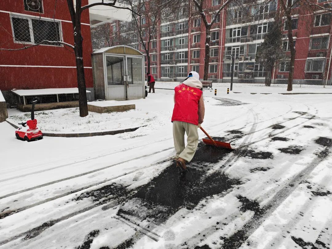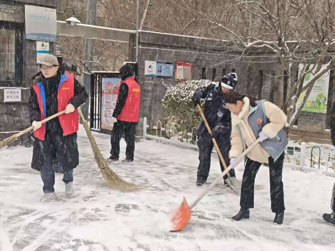 街道提前精心谋划、周密部署,迅速组织辖区内环卫集团、应急队伍、各社区、物业、志愿者以及商户等多方力量,全面开展扫雪铲冰工作,对主要道路、街巷以及门前三包区域,安排专人进行细致清扫。