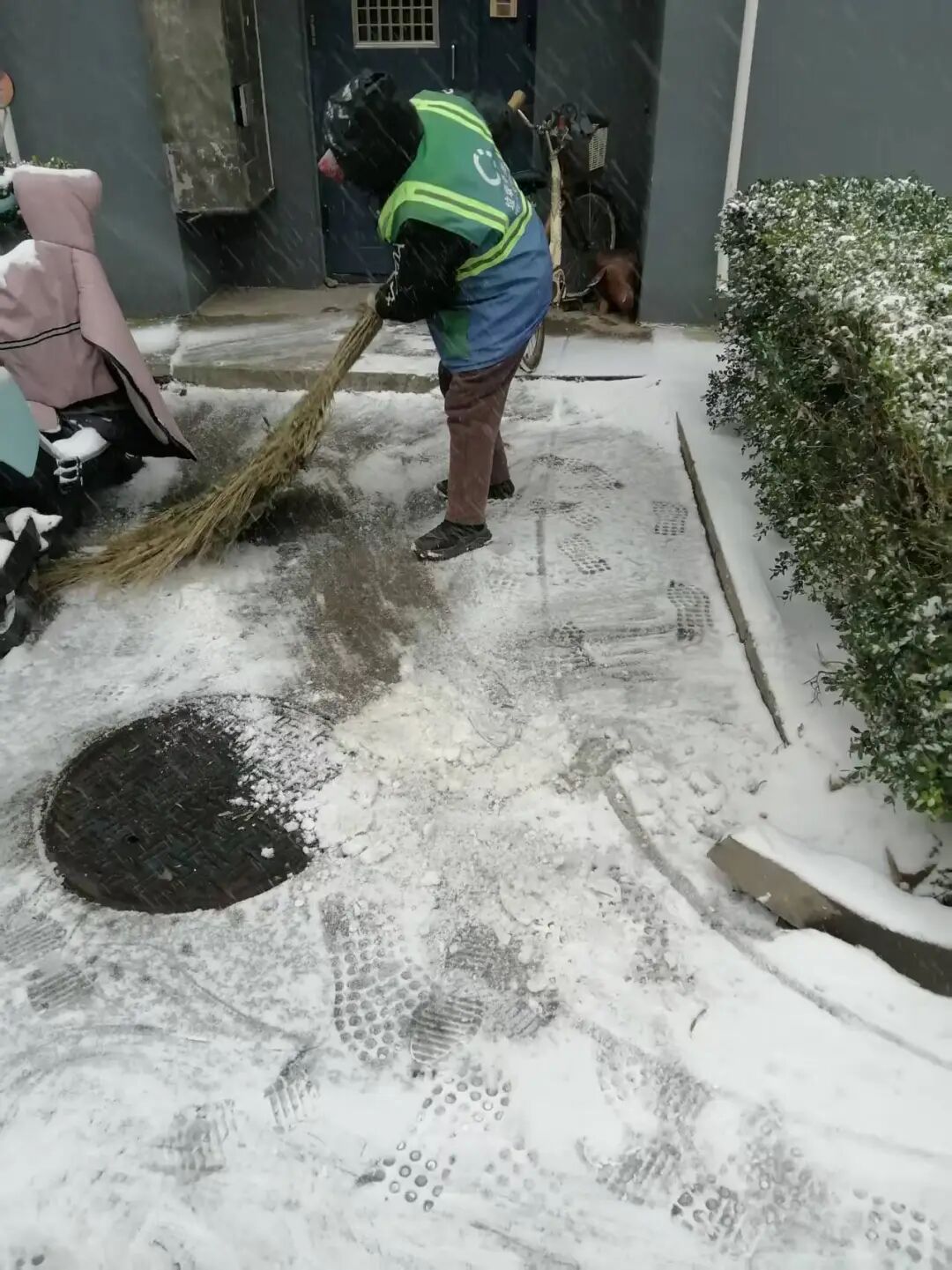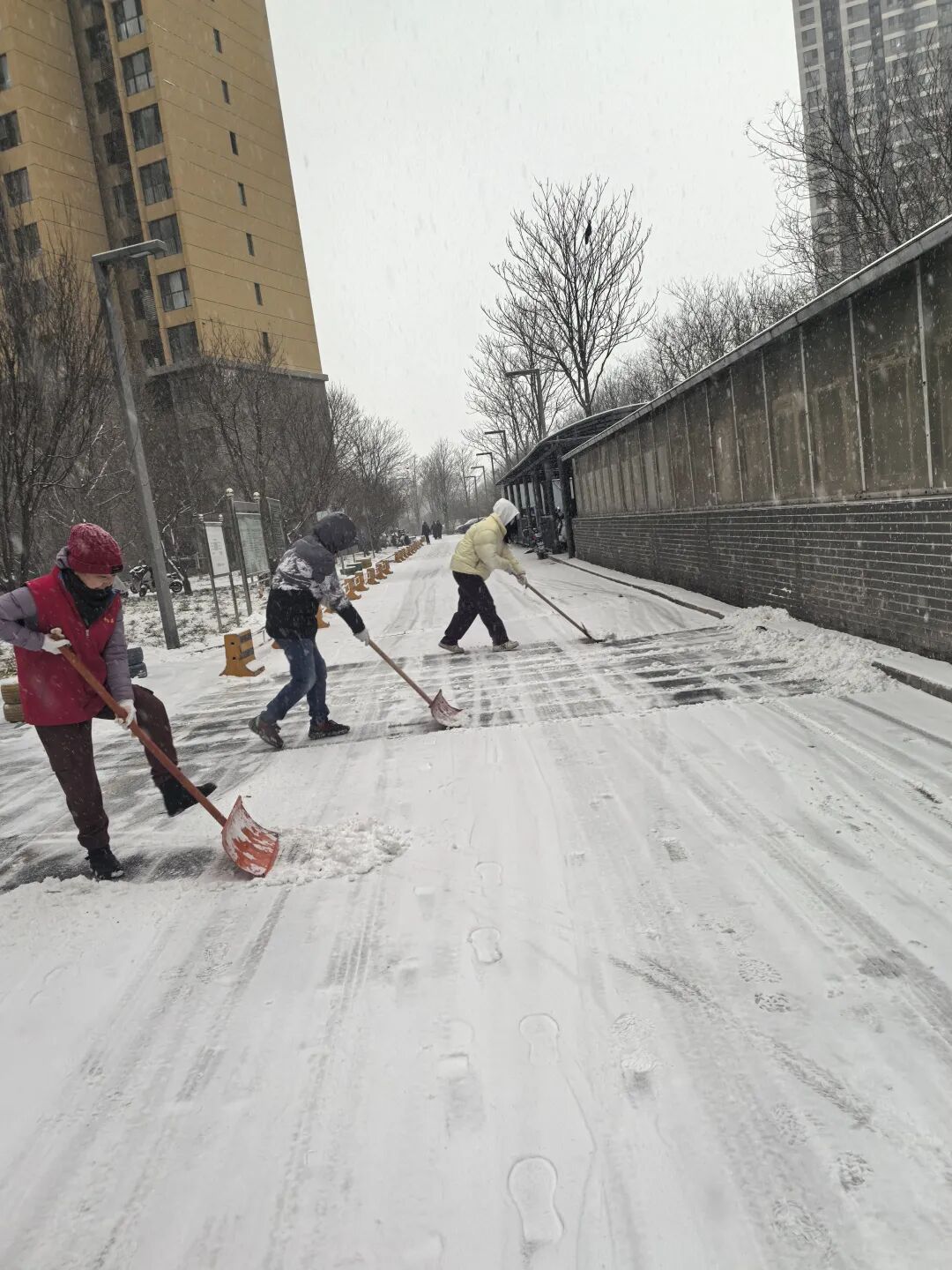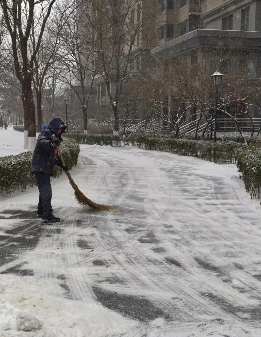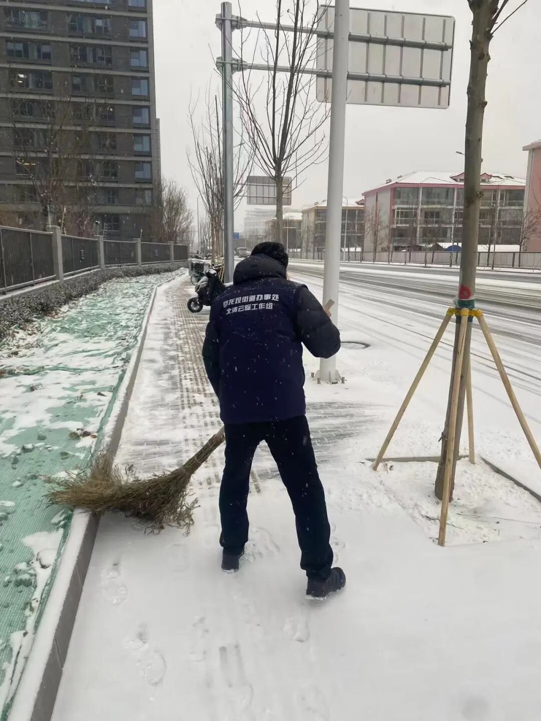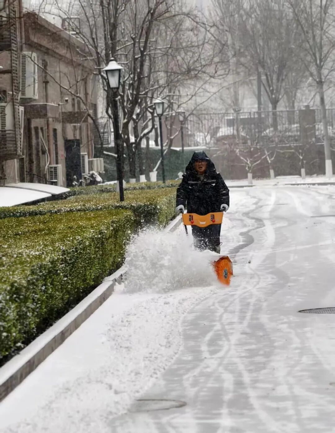 街道提前精心谋划、周密部署,迅速组织辖区内环卫集团、应急队伍、各社区、物业、志愿者以及商户等多方力量,全面开展扫雪铲冰工作,对主要道路、街巷以及门前三包区域,安排专人进行细致清扫。