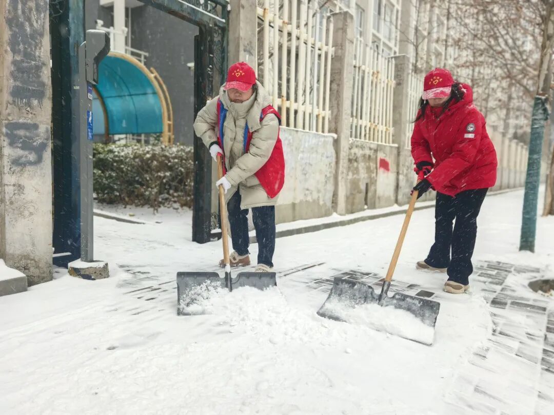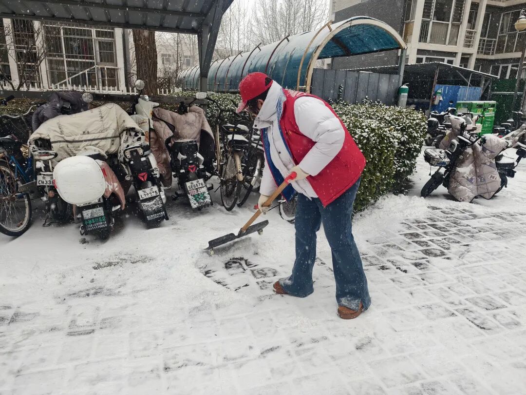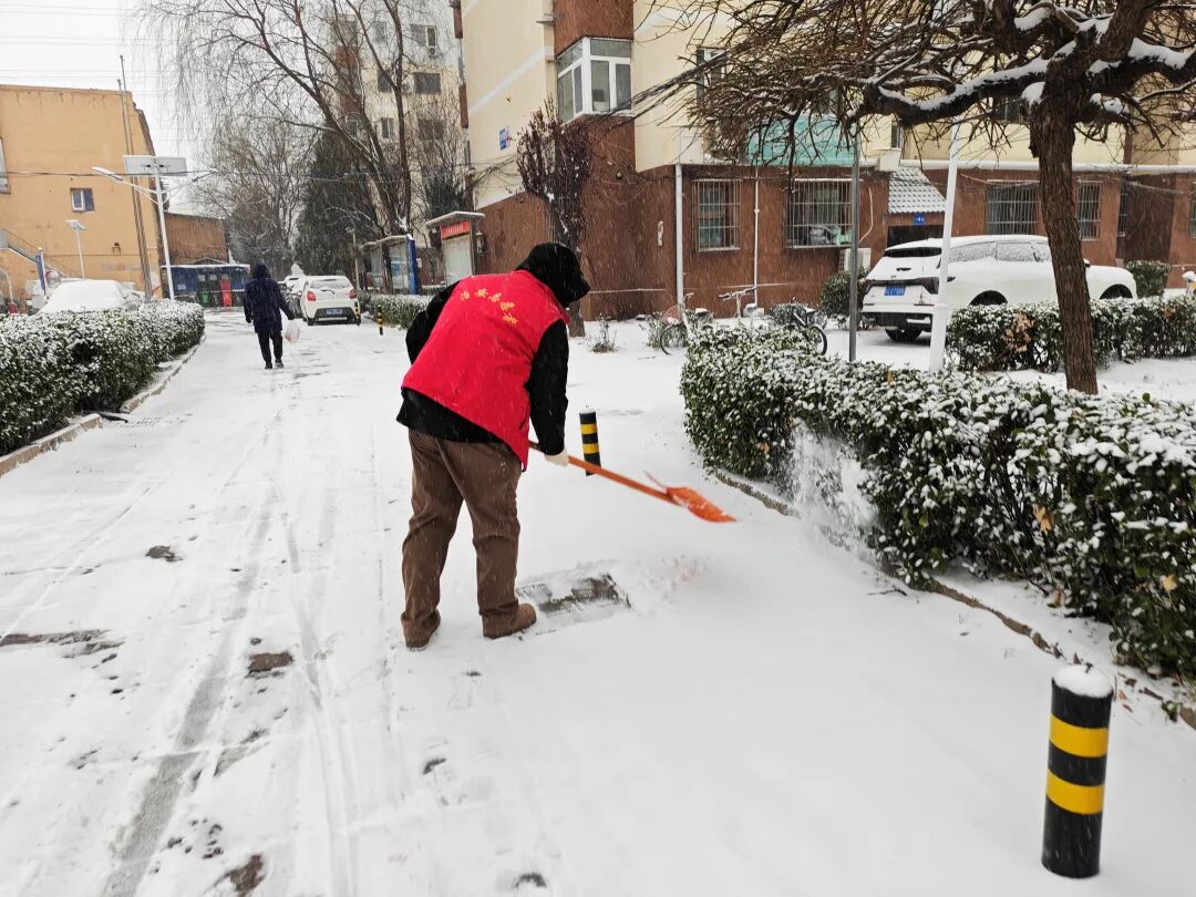 各社区积极响应,成为铲冰除雪的主力军,“两委”成员、物业工作人员、党员、快递小哥以及群众志愿者等多方合力,吹响扫雪铲冰“号角”。大家拿起铲子和扫帚,对社区内主要道路、人行道、单元楼门口等居民出行必经之路进行全面清理。