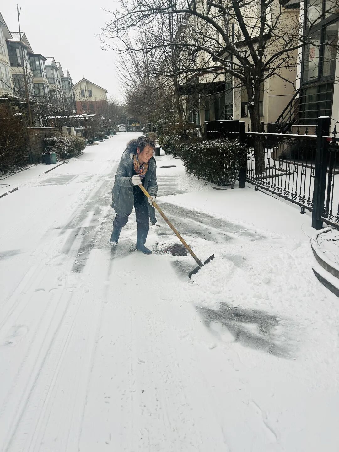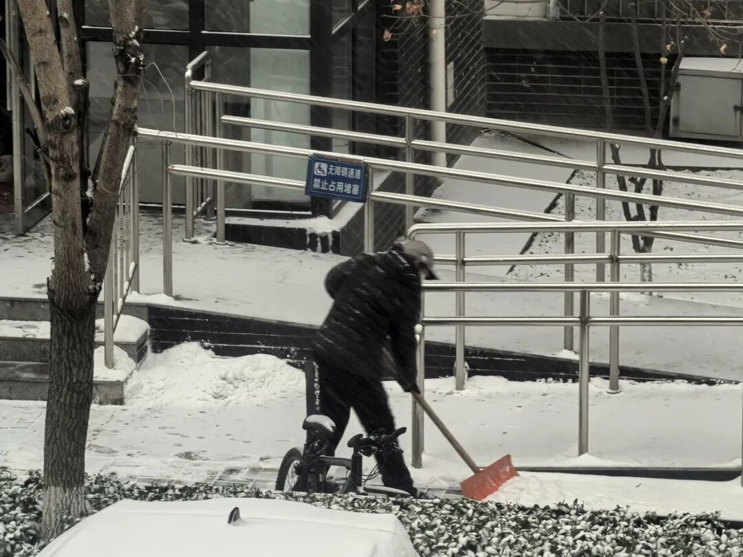 工作人员相互配合,干劲十足,吸引越来越多居民加入。一条条“安心路”被开辟出来,为居民安全出行保驾护航。