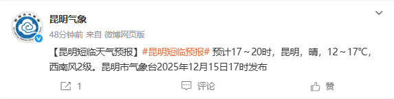 通报显示,2025年截至12月10日,昆明全市平均气温16.6℃,较历史同期偏高0.1℃,但较2024年同期偏低1.2℃。各县(市)区气温分布略有差异,寻甸、晋宁分别较历史同期偏低0.3℃、0.1℃,宜良、石林与历史同期持平,其余区域偏高0.1—0.3℃。
