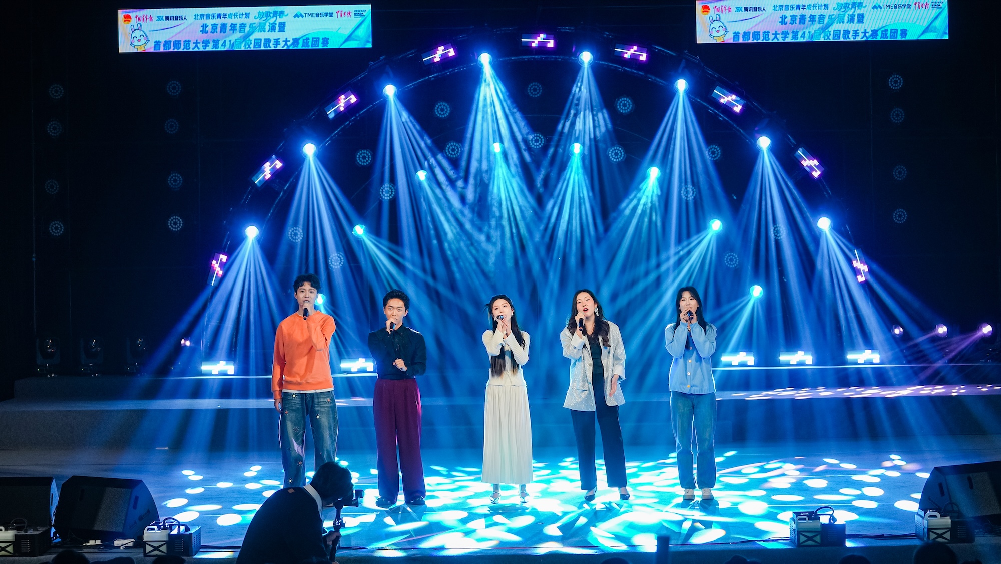 12月11日,“放歌青春”北京青年音乐展演暨Sostar Singer2026成团赛在在大学生活动中心演播厅举行。北京团市委副书记丁蕾,中国青年报党委常委、副总编辑吴湘韩,我校党委常委、副校长韩继华,中国青年报、北京团市委、北京艺促会相关同志,19所兄弟高校代表,学校机关部处、各院系师生700余人到场观看演出。