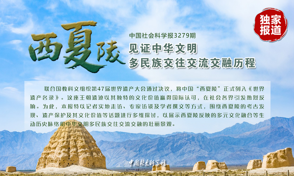 规模宏大、类型丰富的帝陵、陪葬墓、防洪工程遗址以及陵区北端的大型建筑基址等4类建筑遗址群,及其与贺兰山浑然一体形成的壮丽景观,连同陵区发现的西夏文残碑在内的丰富多样的出土文物,为繁荣延续近200年的西夏王朝及其君主世系提供了不可替代的特殊见证;实证了这一时期西夏在“丝绸之路”上的中继枢纽地位,让我们可以触摸多元文化融合共生的脉络,感受中华民族共同体的深厚魅力。面对自然侵蚀、社会发展的压力,西夏陵因我国长期的文物、生态保护实践得以延续至今,向国际社会展现了我国文物保护的科学理念、科研能力和技术水平,反映了我国文化遗产保护、生态文明建设成果,以及在文化和自然遗产融合保护方面的积极探索。