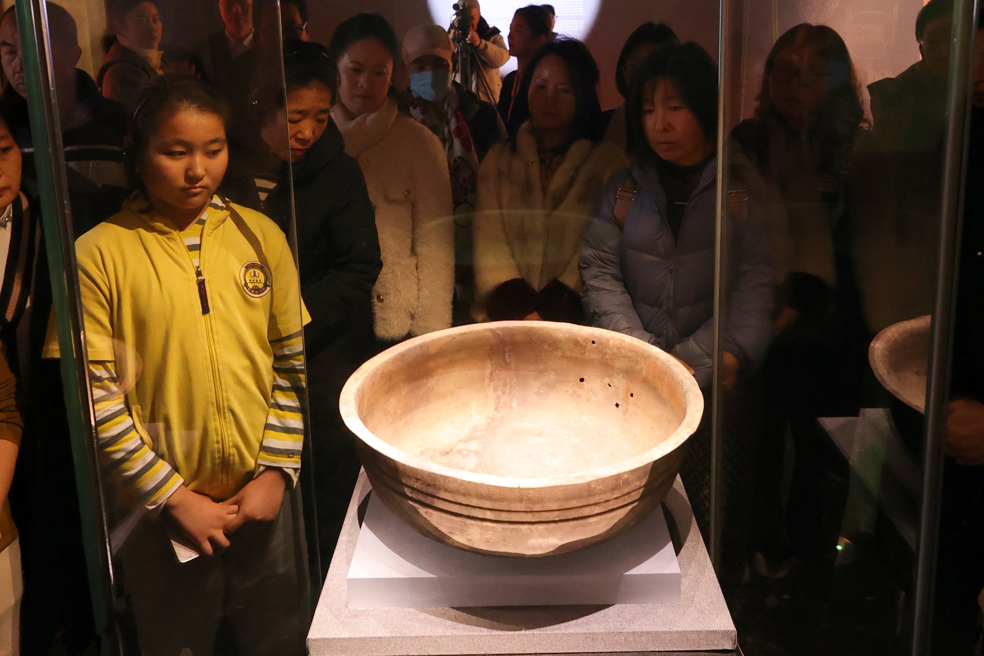 不少市民举着手机近距离拍摄,感叹“隔着玻璃都能感受到大汉的富贵气场”。