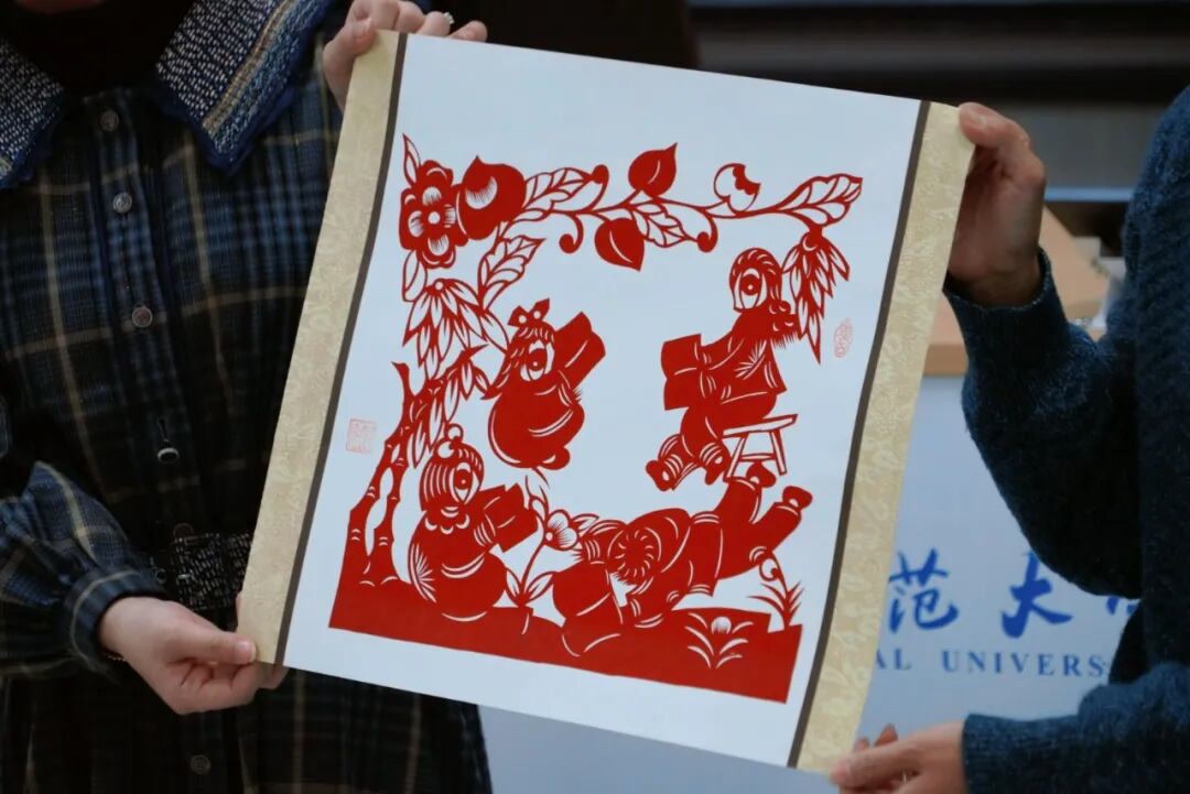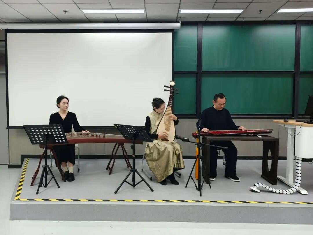 接着,古琴九疑派第四代传人、官琴斫制技艺第四代传人孔德辉先生与学院师生合奏《关山月》,并作了古典乐器科普知识介绍。伴着典雅的音乐,山西剪纸“河东第一剪”第三代传承人李泽民老师现场制作剪纸作品《我爱阅读》,以简洁、生动的意象向师生表达美好期许和祝福。