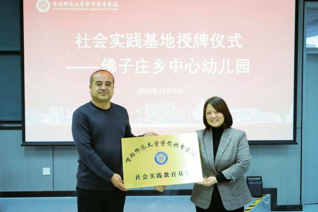 随后,开展了授牌仪式,学院正式将佛子庄乡中心幼儿园纳入社会实践教育基地。
