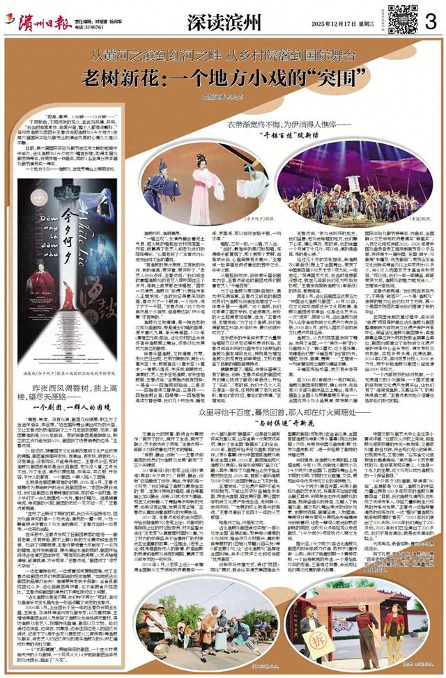 日前,第六届国际实验戏剧节在红河之畔的越南宁平举办,沾化渔鼓戏《今夕何夕》蟾宫折桂,取得本届戏剧节特等奖,并荣获唯一作曲奖,同时3名主演分获本届戏剧节演员奖一等奖。