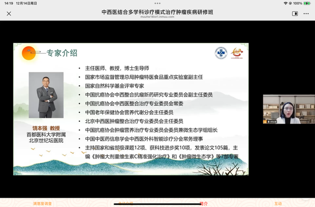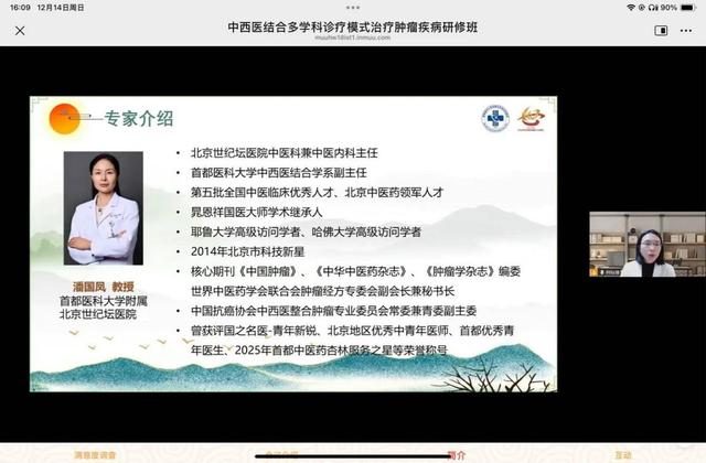 2025年12月14日,首都医科大学附属北京世纪坛医院中医科主办的第十届国家级继续教育项目“中西医结合多学科诊疗模式治疗肿瘤疾病研修班”在线上成功举办。秉承一贯的高水准与专业定位,本届研修班吸引了国内多家医院中医、中西医结合肿瘤医务工作者5707名学员云端相聚、共研医术。
