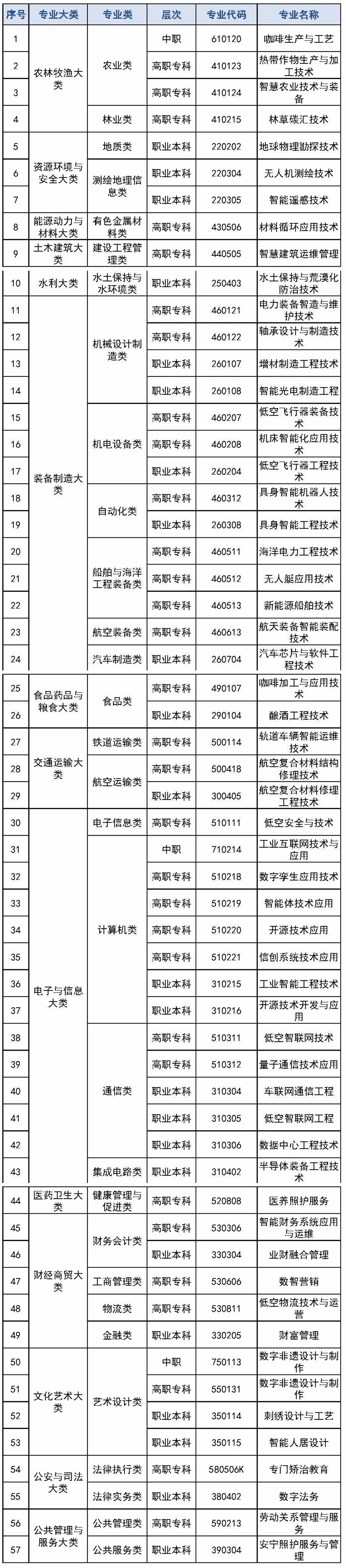 清单显示,此次新增57个职教专业,聚焦国家重大战略、区域重点产业以及民生紧缺领域对高素质技能人才新需求,覆盖低空经济、具身智能等前沿领域。一起来看↓↓↓