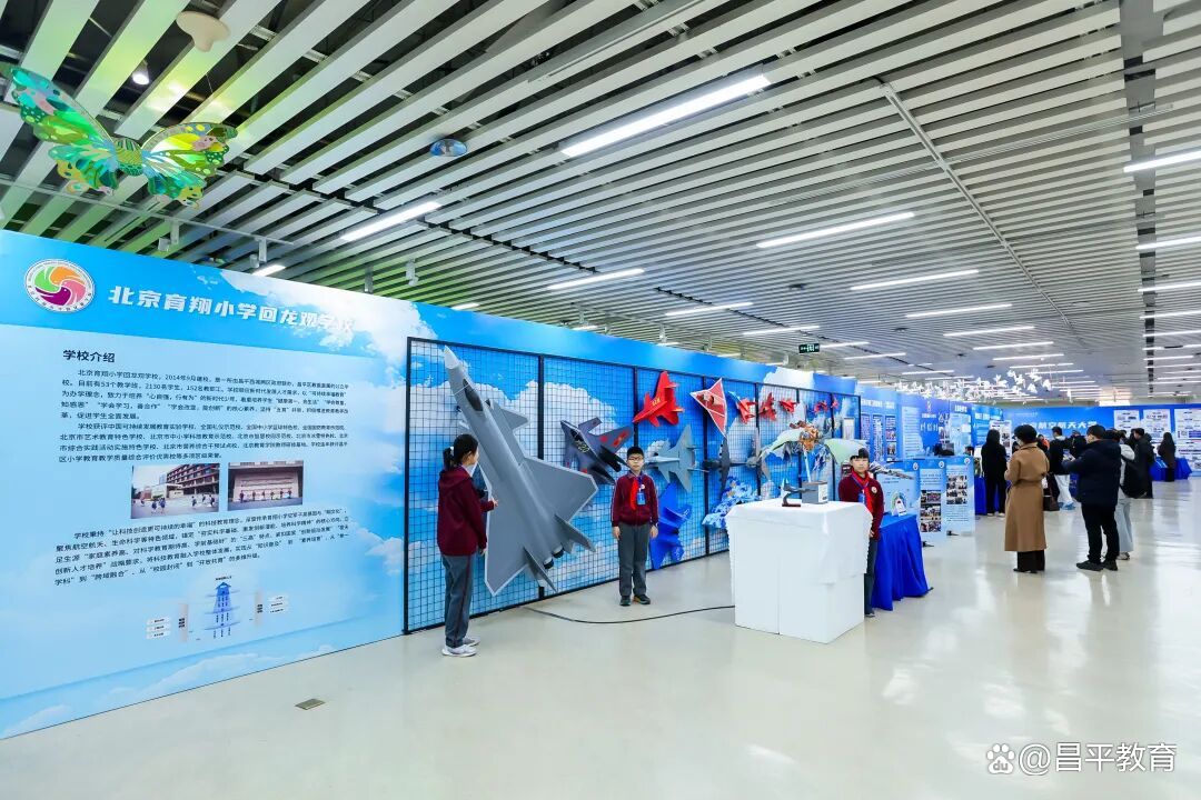 在闭幕式的市航空主题展区,北京育翔小学回龙观学校代表昌平区精彩亮相,成为展区内的人气焦点。展区内整齐陈列着20余架飞机模型,涵盖仿真军事机、创意自制机、民用客机等多个类型,造型各异、特色鲜明。每架模型都凝聚着学生的巧思与心血:有的采用环保材料制作,践行绿色理念;有的融入科幻元素,充满想象力;有的精准还原真机结构,展现扎实的动手能力。
