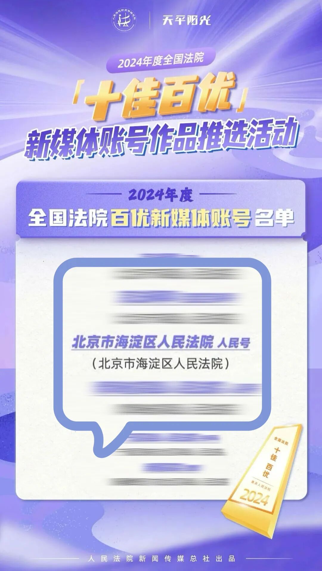 1.全国法院百优新媒体账号