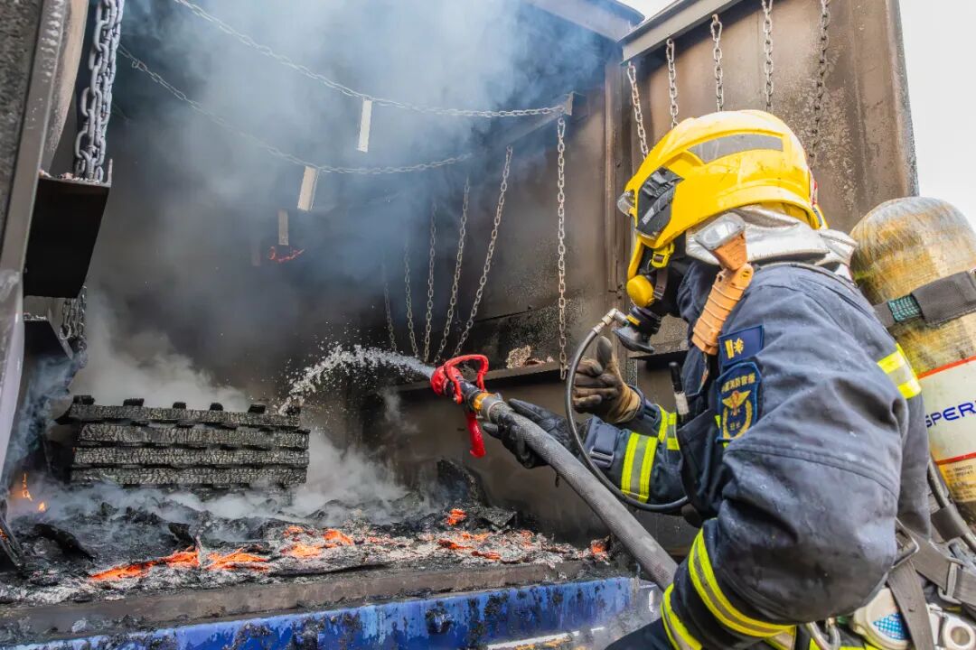 教官团队指导基层队站利用真烟真火训练装置,从搭建火点、烟气识别、门控技术应用、热敏成像仪使用、内攻环境安全评估等多个方面开展训练,并为参训人员讲解轰然、回燃、滚燃等多类型火场危险的识别与处置措施。