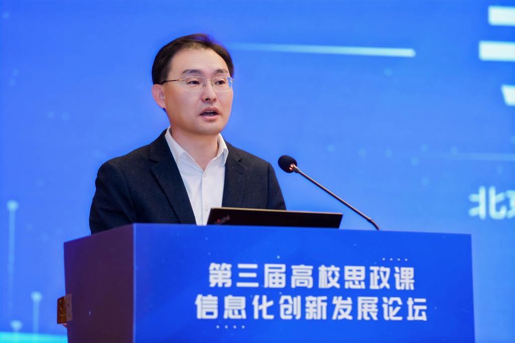 于成文在致辞中介绍了北京市坚持将数字技术赋能作为促进思政课高质量建设的最大增量,以“首善标准”推进“大思政课”综合改革的突破性进展和标志性成果。他对论坛主办高校推动思政课信息化创新发展的系列举措表示肯定,并从聚焦优质供给、坚持师生共育、高效协同发力等方面对高校思政课内涵式发展、加快形成强大思政引领力提出建议。