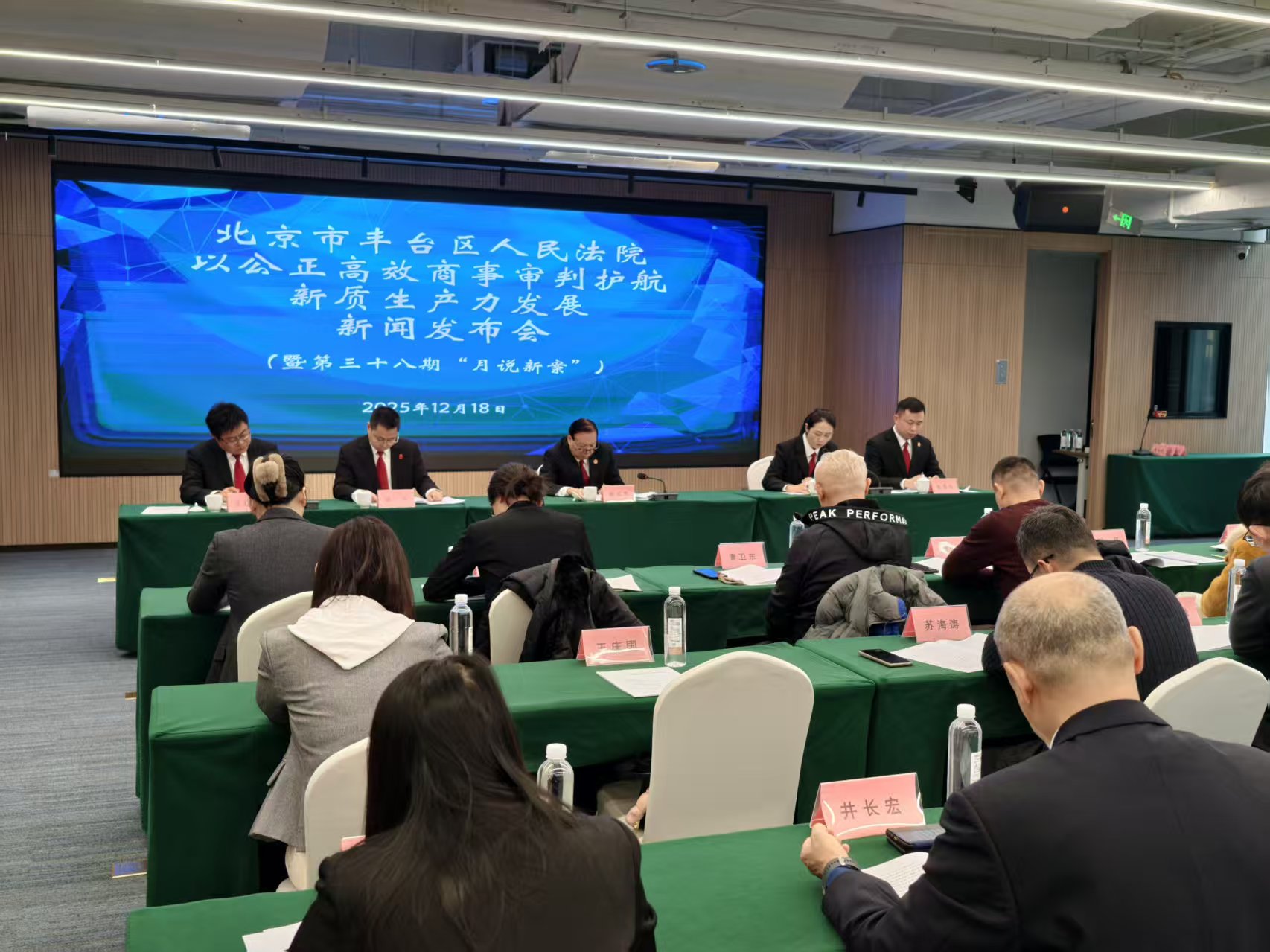 当新质生产力成为推动高质量发展的强劲引擎,法治如何为其保驾护航?面对层出不穷的新技术、新业态、新类型案件,司法审判怎样既守住公平正义的底线,又为创新活力留足空间?12月18日,北京市丰台区人民法院召开专题新闻发布会,系统介绍了该院以高质量商事审判服务保障新质生产力发展的系列创新举措与阶段性成效,勾勒出一幅“保护创新、规范竞争、赋能发展”的司法实践图景。
