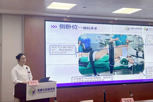 首都儿童医学中心手术室刘笑天副主任护师讲授了“肥胖儿童手术过程中的体位管理”,系统讲解了术中体位管理的基本原则及常见手术体位的摆放要点,并强调胖宝宝的术中护理需医护人员实施更精准的守护。
