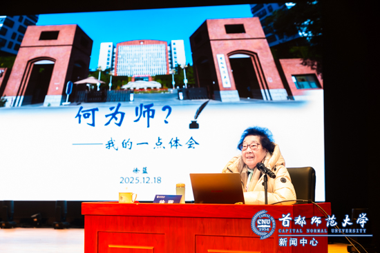 徐蓝以“何为师?——我的一点体会”为主题,通过分享以先进教育理念指导教学工作、以高标准严要求投入教学一线、以高水平科研成果支撑教学提升、以学术进步回馈基础教育等四方面内容,用自己的切身经历为在场师生深入讲述了“何为师”的教育感悟。报告结束时,徐蓝深情寄语在座师范生,未来要时刻秉持“学高为师,身正为范”的标准,涵养“不为一时之名利,不争一日之短长”的境界,努力把“静心教书,潜心育人”作为终生的事业。整场报告视野宏阔、内涵丰富,既体现了对历史的深邃思考,又充满了对教育的满腔热爱,对于广大师生深刻把握教育内涵、践行教育家精神具有重要启发意义。