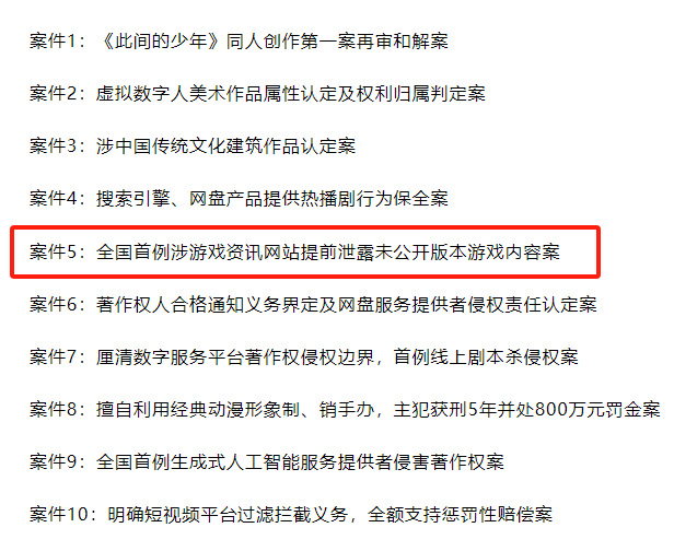 全国首例涉游戏资讯网站提前泄露