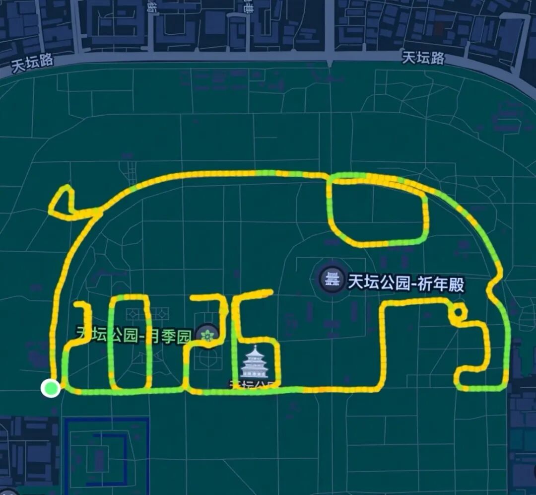 作为跑圈知名的经典路线,天坛“吉象跑”既以可爱灵动的轨迹形象圈粉无数,更承载着“吉祥如意”的美好寓意,吸引众多跑友慕名打卡,成为融合健康、文化与城市情怀的灵动名片。