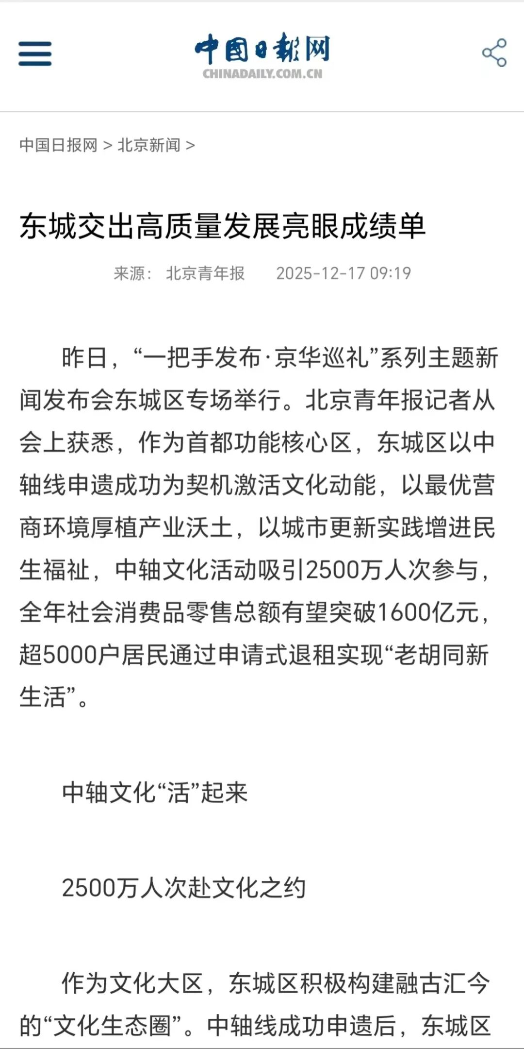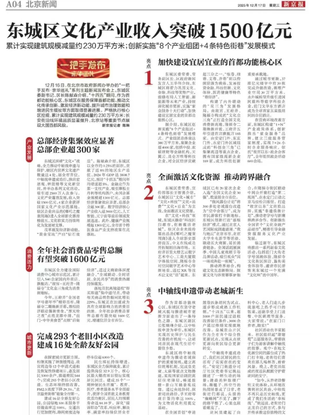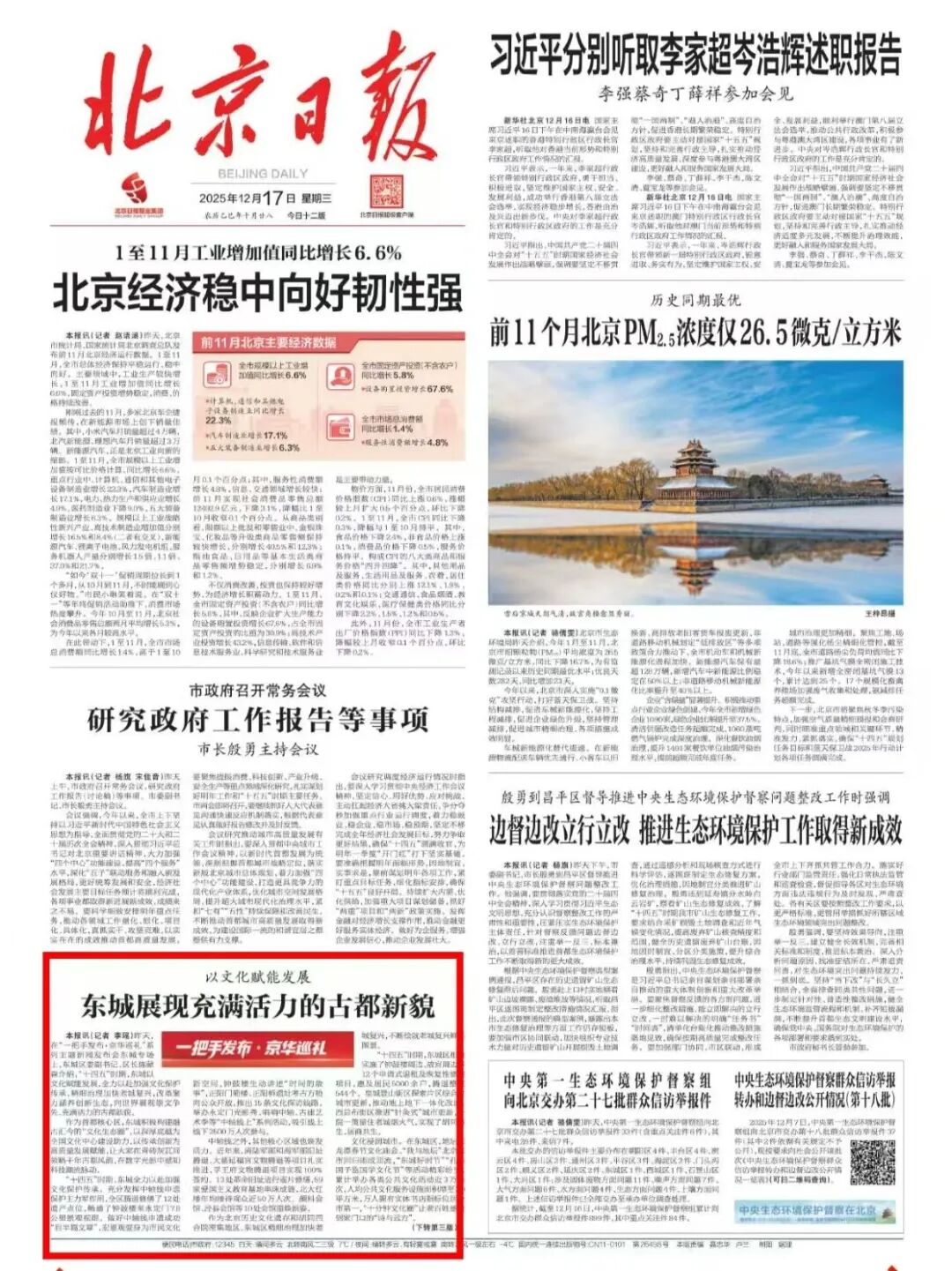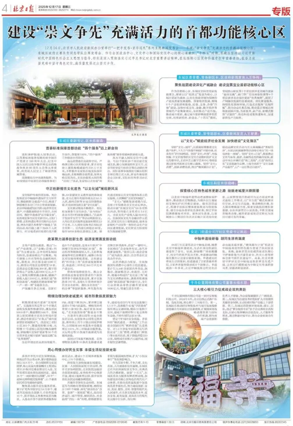 传播渠道方面,东城区积极拓展路径,构建起“线上+线下”立体化传播矩阵。《北京日报》《新东城报》推出专版专题报道,“北京发布”“北京东城”等新媒体平台同步开启直播,策划推出系列宣传海报,以图文并茂的形式提炼发布嘉宾金句、呈现区域特色内容,有效扩大传播声量。