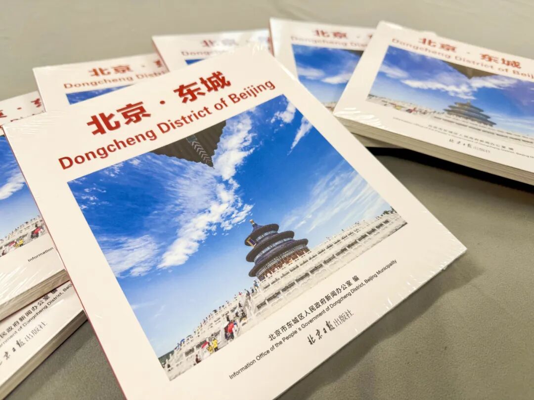此外,发布会现场摆放的《北京·东城》城市形象宣传图册,吸引了与会记者驻足翻阅。图册内容聚焦“国家中枢”“千年古都”“文化名城”“人间画卷”“宜居福地”“现代城市”六大篇章,采用中英双语呈现,精选百余张代表性地标与活动图片,生动勾勒出东城的城市风貌。翻开图册,壮美中轴景观、完备文化设施、繁华商圈盛景、百姓安居画卷跃然纸上,为中外记者、市民游客打造了一个“看见东城、了解东城、爱上东城”的全新窗口。