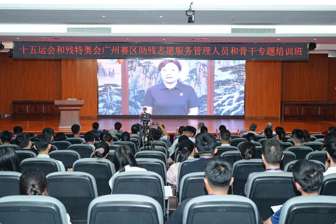 2025年8月29日—30日,由中国残疾人联合会体育部、十五运会广东赛区执委会大型活动和志愿服务部、残特奥会广东赛区执委会大型活动和志愿服务部、共青团广东省委员会、广东省残疾人联合会指导,北京奥运城市发展基金会支持,十五运会和残特奥会广州赛区执委会志愿者部、十五运会和残特奥会广州赛区执委会残特奥部、共青团广州市委员会、广州市残疾人联合会等联合主办,广州市团校(广州志愿者学院)承办、中国助残志愿者协会协办的十五运会和残特奥会广州赛区助残志愿服务管理人员和骨干专题培训班在广州市团校顺利举办。中国残奥委员会副主席杨金奎、中国助残志愿者协会副会长张超英,省执委会大志部副部长王浩、陈海龙,市执委会副主任、副秘书长刘成勇,市执委会志愿者部部长段希、中国助残志愿者协会副秘书长李楠等领导出席开班式和培训班。