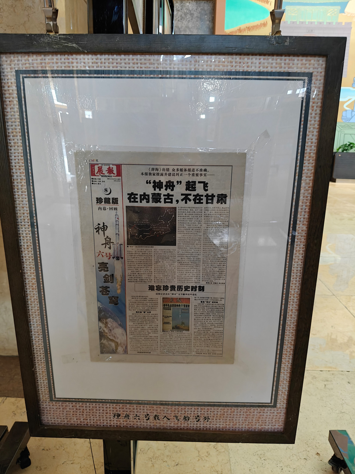 申雨林还特意介绍了融入鲜明内蒙古地域元素的板块,他说这是他精心设计的亮点,就是想让航天故事与草原情怀深度交融。他特意精选了12份内蒙古各盟市媒体的航天主题报道,寓意内蒙古12个盟市紧密团结在党中央周围。随后,他指向展台上的一份报纸,指着其中的文字细节解释道:“很多人都以为酒泉卫星发射中心在甘肃,其实它的归属地是内蒙古额济纳旗,这些报纸的原始记载就是最好的证明。”