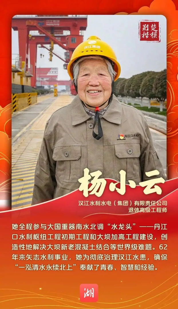 致敬荆楚楷模,汇聚支点力量。12月18日,2025年度“荆楚楷模”名单发布,1个集体、7名个人上榜。来自我市的汉江水利水电(集团)有限责任公司退休高级工程师杨小云上榜。