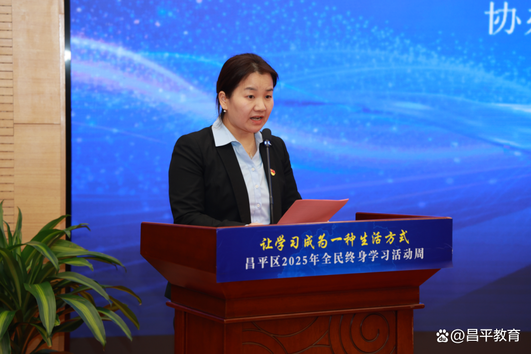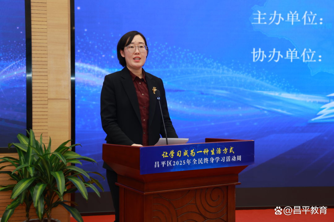 马春秀代表区委、区政府向莅临现场的各位领导、专家以及市民朋友表示热烈欢迎和衷心感谢。她充分肯定了昌平区在“十四五”时期建设学习型城区所取得的丰硕成果。她表示,站在“十五五”新起点,昌平区将紧扣首都率先基本实现社会主义现代化的目标要求,把终身学习纳入区域发展总体规划,着力完善终身学习服务体系和广泛普及的学习型组织体系,持续擦亮学习型城市名片,推动知识滋养城市、学习提升自我,在实践中建功立业,共同书写学习型昌平建设的崭新篇章。