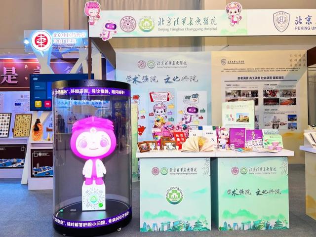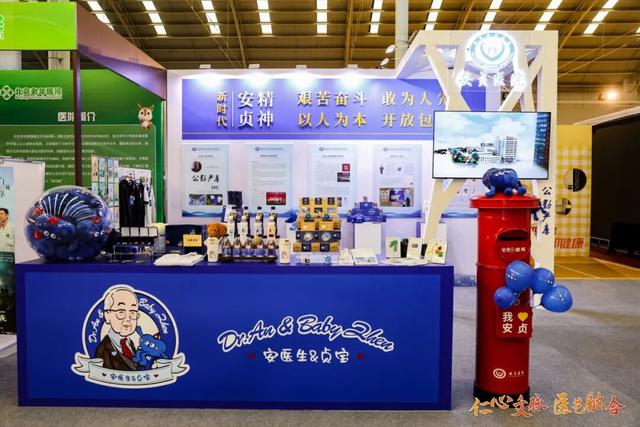 北京安贞医院展位通过“安医生”与“贞宝”IP形象应用、系列文创产品、5T核磁扫描水果画等,将医院文化转化为可看、可感、可亲的创意表达。