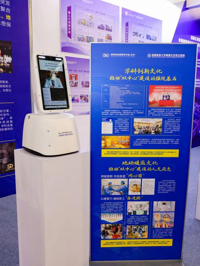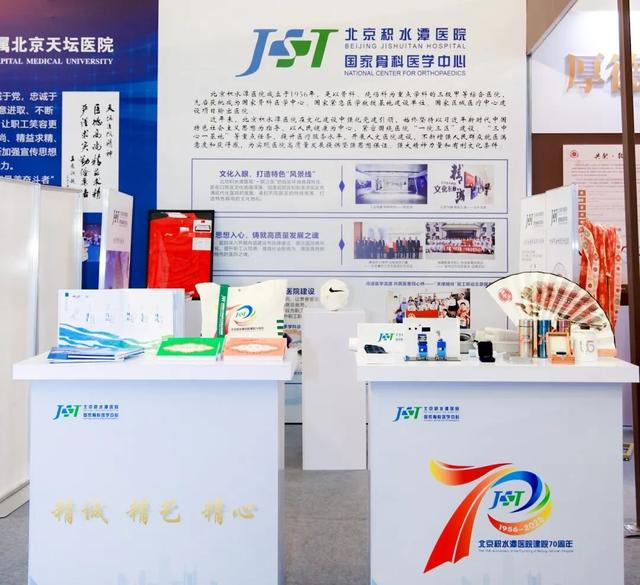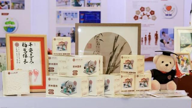 北京积水潭医院精心展陈了建院70周年系列文创产品及骨科手术机器人乐高模型等特色物品,生动呈现了医院在文化传承与科技创新方面的丰硕成果。