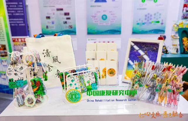 北京小汤山医院展区分为六部分,展现医院文化、医艺融合与体医融合。展区内患者作品、文创产品及康复故事彰显医院人文关怀与疗愈生态。