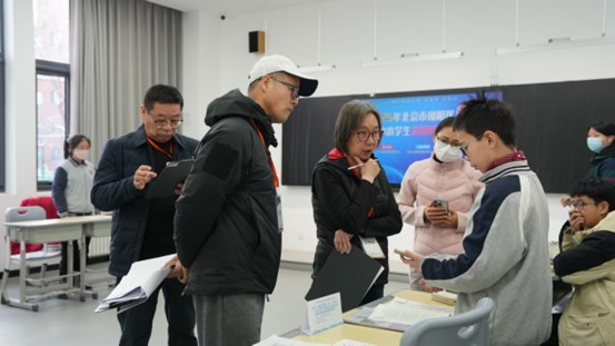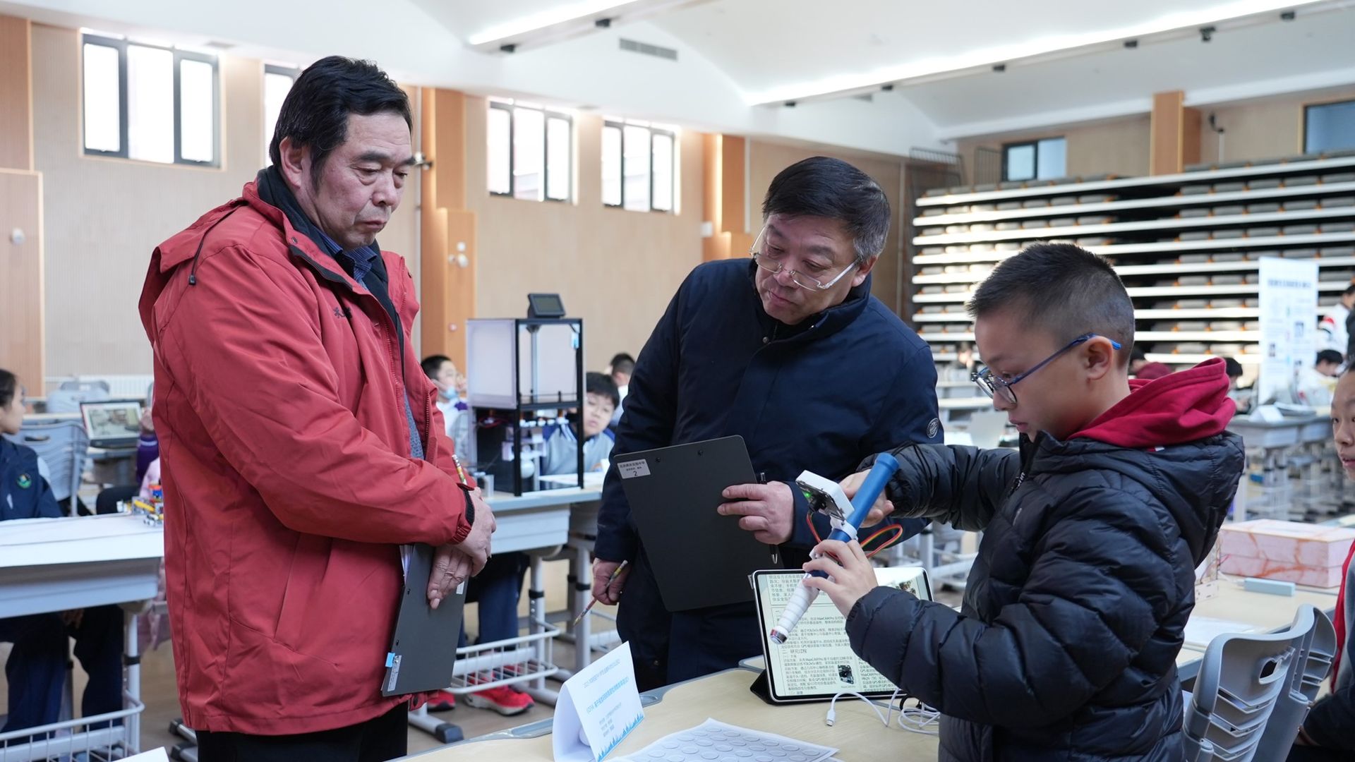 作为朝阳区拔尖创新人才培养的核心载体,本届金鹏论坛征集中小学生发明创造类研究项目近600项。论坛特别邀请10余位科技专家组成评审团,包括来自清华大学、中国科学院等高校、科研院所的专家。评审团综合考察项目的科学性、实用性与社会价值展开评审。评审分为初评与复评答辩两个阶段,采用“项目展示+现场答辩+过程性评价”三维体系,不仅关注学生成果创新性与实用性,更通过研究报告、研究日志、演示视频等材料,考查学生的探究过程与协作能力。活动不仅集中展现了朝阳学子“爱思考、敢动手、善创新”的精神风貌,也通过“学生展示+专家点拨”的精准对接模式,让科学探究的种子在互动交流中深深扎根。